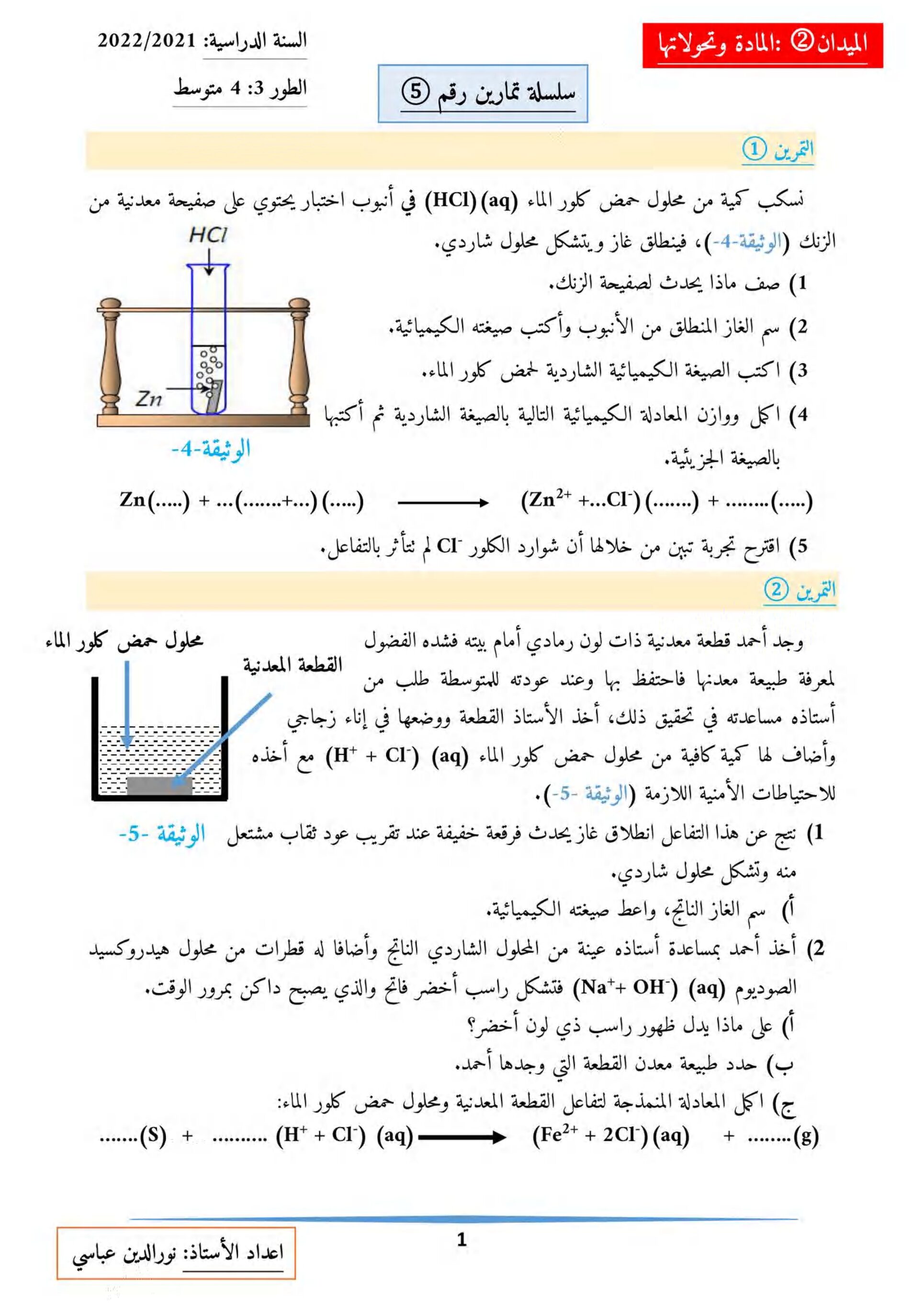 العلوم الفيزيائية السنة الرابعة متوسط