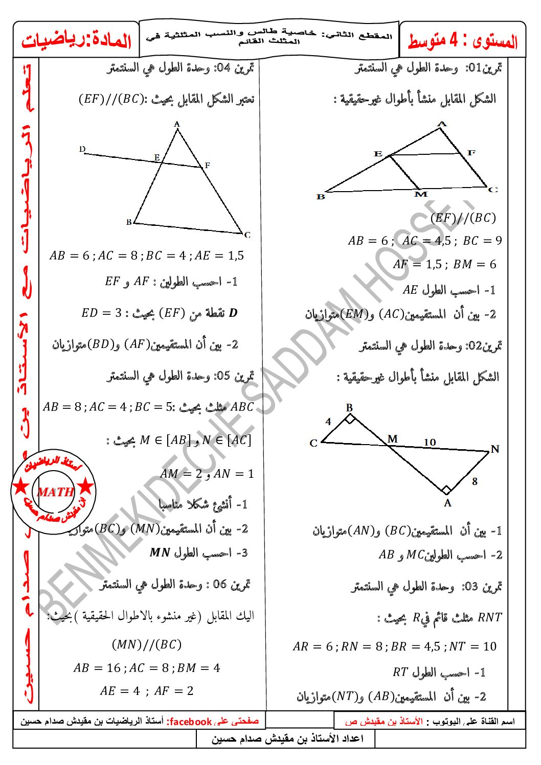 سلسلة تمارين خاصية طالس والنسب المثلثية في المثلث القائم للاستاذ بن مقيدش 4 متوسط 14 سؤال و جواب حول الدالة الخطية و الدالة التالفية في الرياضيات 4 متوسط : سلاسل تمارين وتطبيقات محلولة في الرياضيات سنة رابعة متوسط maths 4AM: ملفات تعليمية في مادة الرياضيات لتحضير شهادة التعليم المتوسط