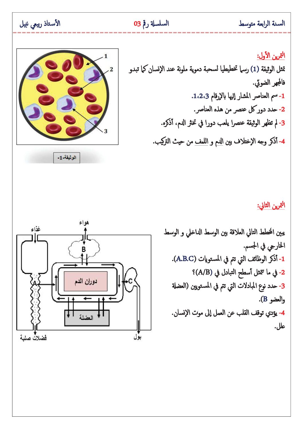 سلسلة تمارين رقم 3 مع الحل في العلوم الطبيعية 4 متوسط المجموعة 1 من مواضيع مقترحة مع الحلول في مادة العلوم الطبيعية 4 متوسط مادة العلوم الطبيعية للسنة الرابعة 4 متوسط دروس مفصلة، فروض واختبارات، تمارين محلولة: