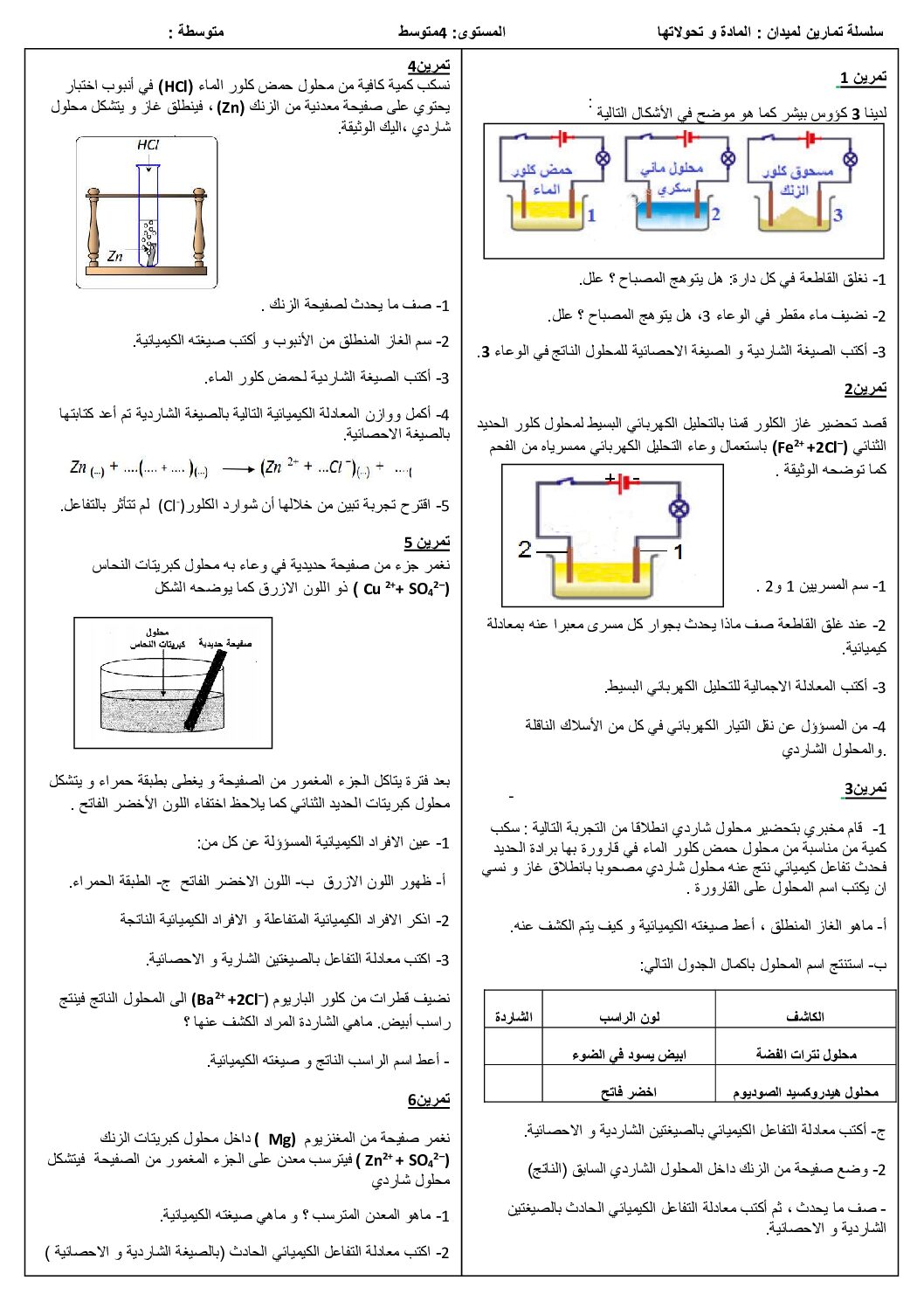 العلوم الفيزيائية السنة الرابعة متوسط