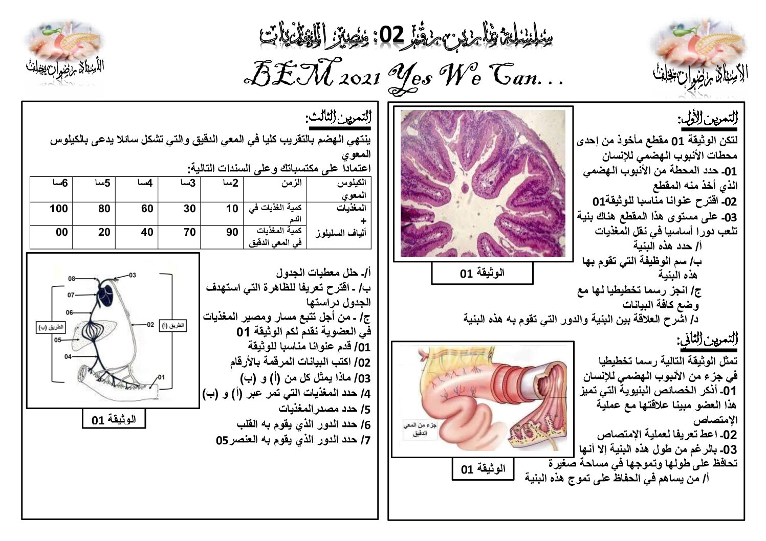 سلسلة تمارين مصير المغذيات نقل المغذيات في العلوم الطبيعية 4 متوسط