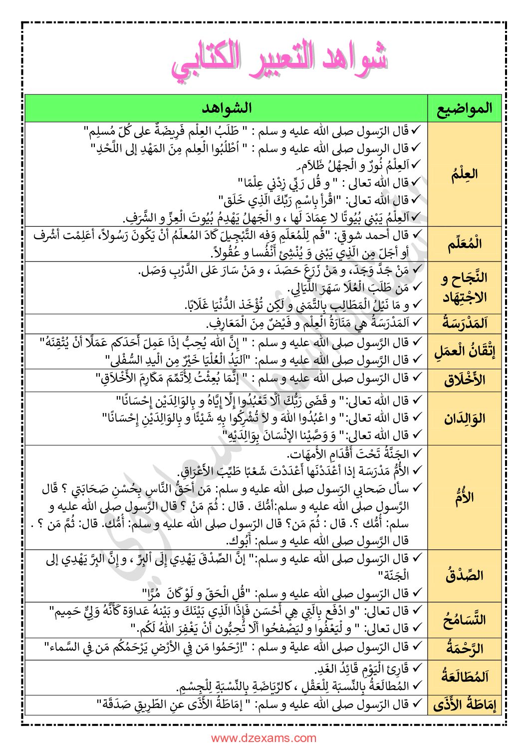 شواهد التعبير الكتابي للأستاذة أسماء سعداوي 4 متوسط