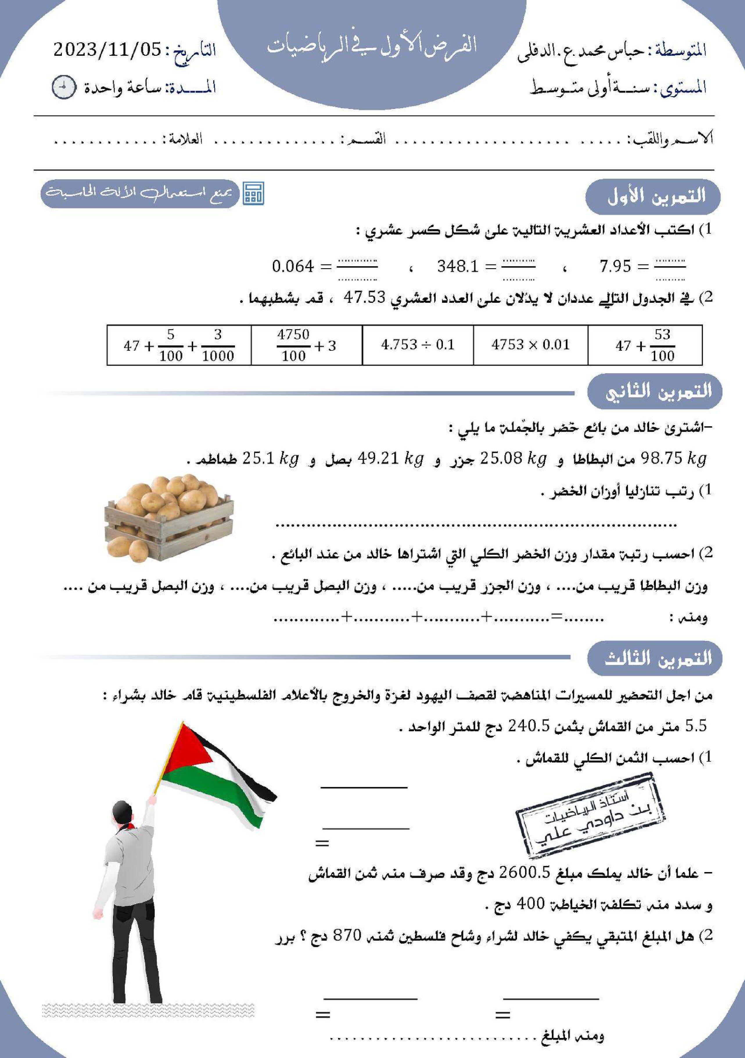 فرض في التربية المدنية الفصل الأول السنة الأولى متوسط رقم 40