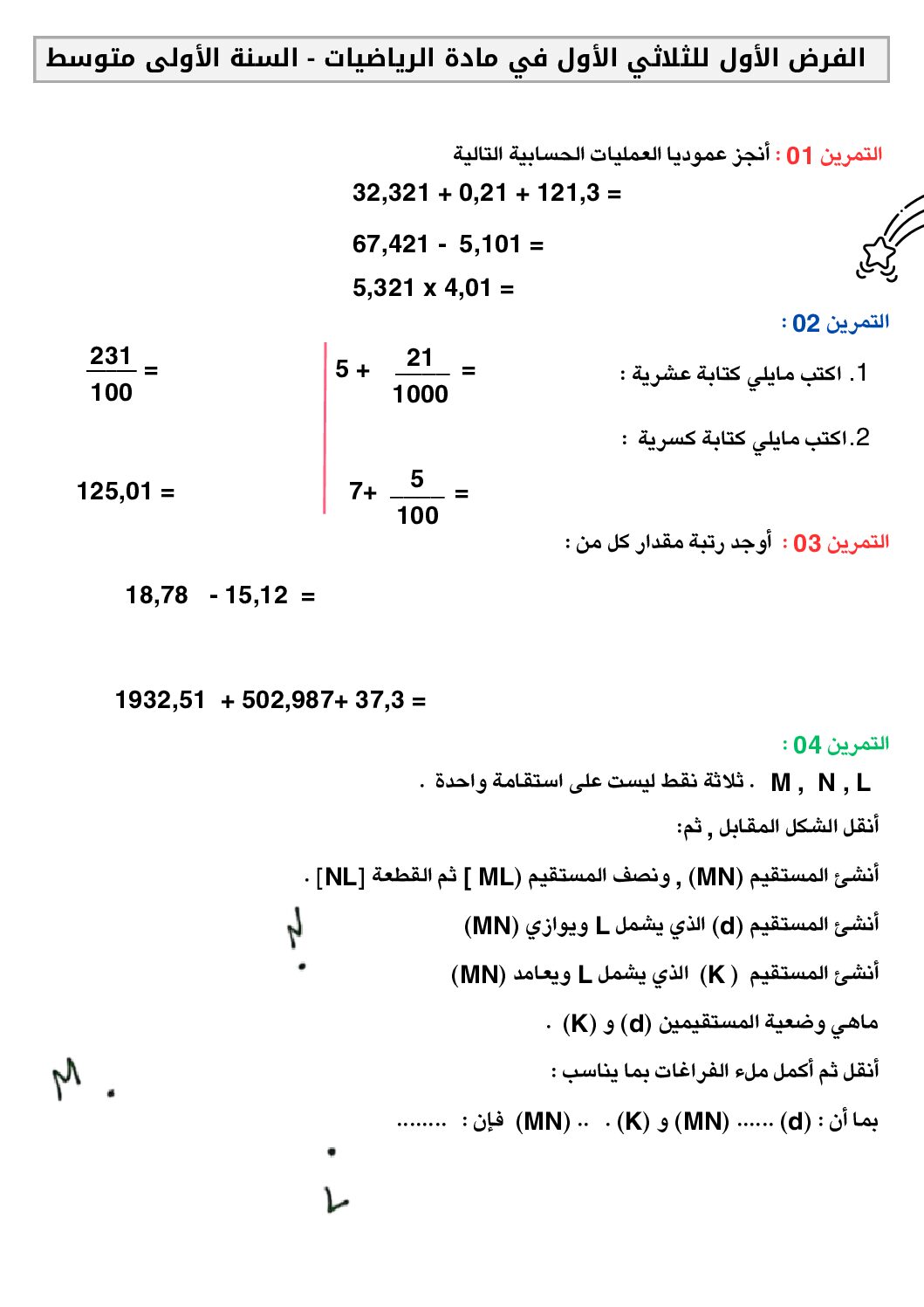 مادة التربية المدنية للسنة الأولى 1 متوسط دروس مفصلة، فروض واختبارات، تمارين محلولة: نموذج لإمتحان في الفصل الأول رقم 58- في مادة التربية المدنية مستوى السنة الأولى متوسط الجيل الثاني ، السنة الدراسية: 2025/2026 مع التصحيح