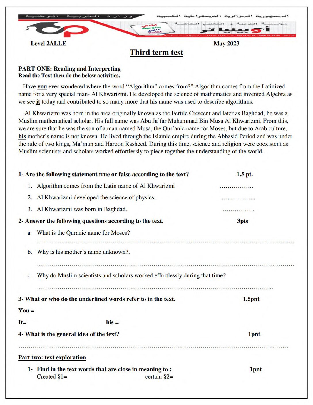 يمكن تصفح الإختبار مباشرة عبر موقع الدراسة الجزائري أو تحميله مباشرة بصيغة PDF بالضغط أعلاه على: .: تحميل :.
