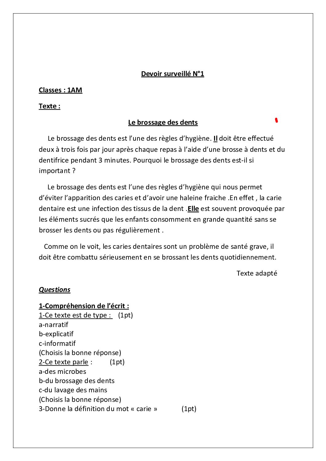 مادة اللغة الفرنسية للسنة الأولى 1 متوسط دروس مفصلة، فروض واختبارات، تمارين محلولة: نموذج لإمتحان في الفصل الأول رقم 54- في مادة اللغة الفرنسية مستوى السنة الأولى متوسط الجيل الثاني ، السنة الدراسية: 2025/2026 مع التصحيح