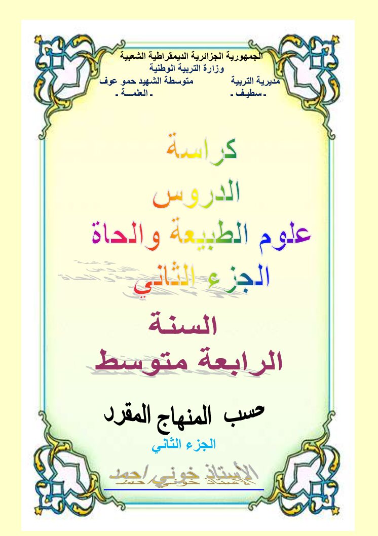 كراسة دروس علوم الطبيعة و الحياة الجيل الثاني الجزء 02 4 متوسط