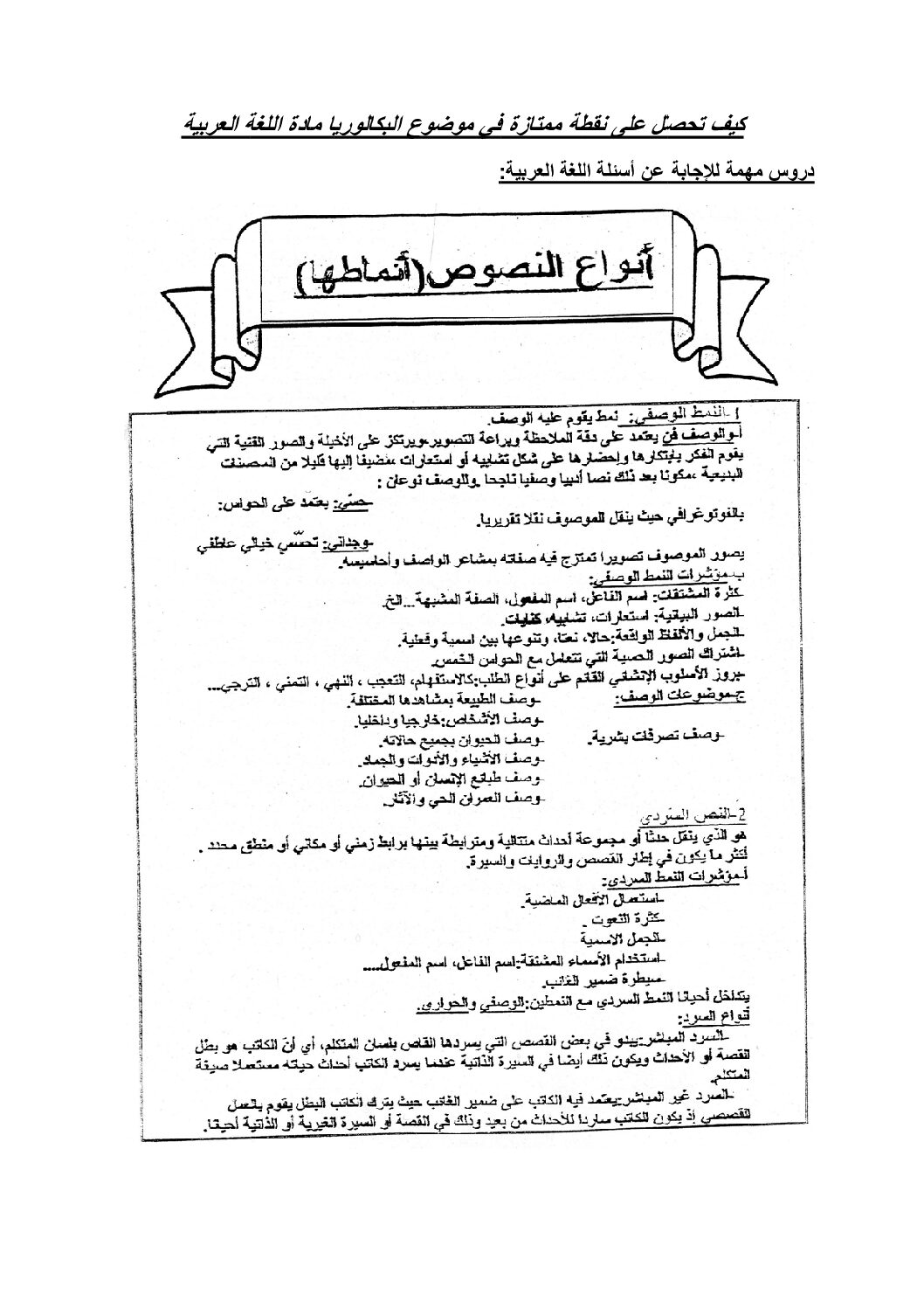 كيف تحصل على نقطة ممتازة في موضوع البكالوريا مادة اللغة العربية 3 ثانوي مادة اللغة العربية للسنة الثالثة ثانوي : ملخص أنواع النصوص الأدبية و أساليبها وأنماطها وطبيعتها ، ملخصات بكالوريا مادة اللغة العربية للسنة الثالثة ثانوي