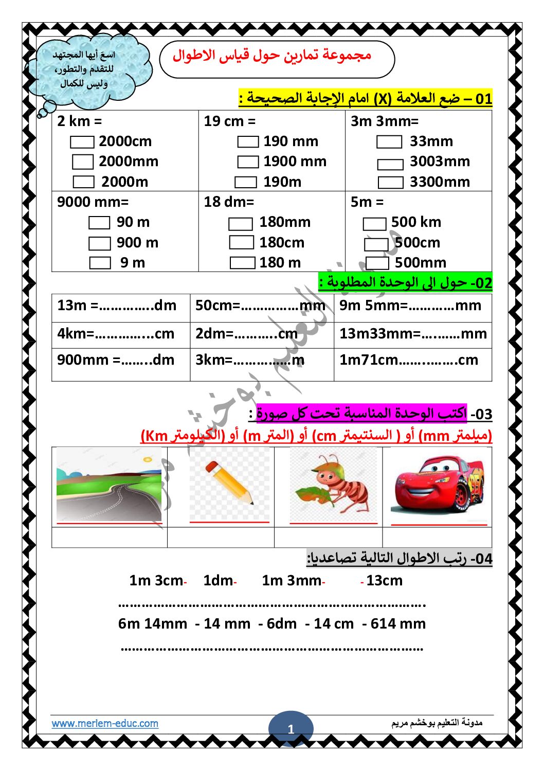 مجموعة تمارين حول قياس الاطوال مع الحل للأستاذة مريم بوخشم 5 ابتدائي وضعية شاملة في الرياضيات رقم 02 مع الحل للأستاذة مريم بوخشم 5 ابتدائي مادة الرياضيات للسنة الخامسة 5 ابتدائي دروس مفصلة ، فروض واختبارات، تمارين محلولة: ملخص دروس الرياضيات للسنة الخامسة ابتدائي