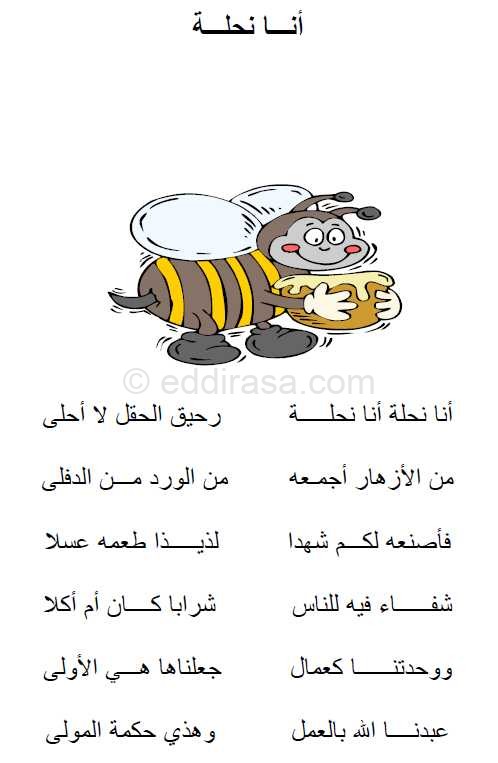 مادة التربية الموسيقية لسنوات التعليم الابتدائي – محفوظات تعليمية تربوية : . محفوظات تعليمية – أغنية أنا نحلة