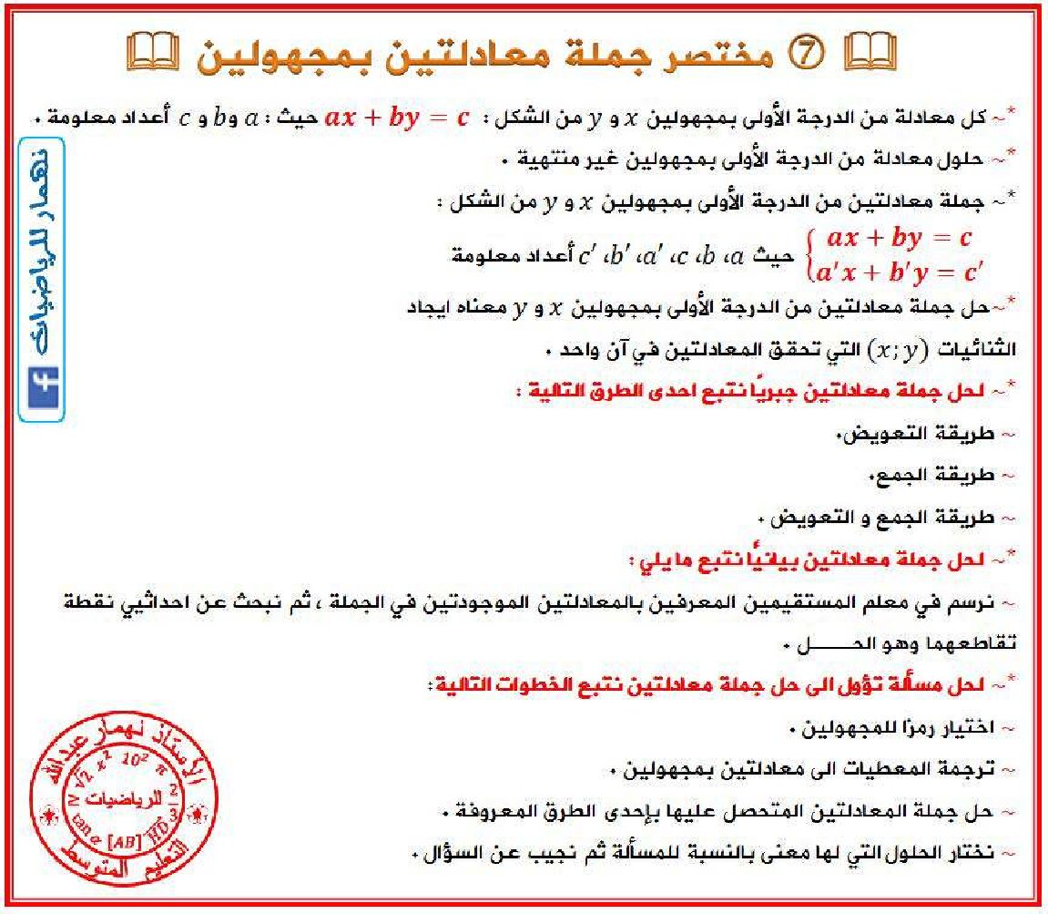 مختصر درس جملة معادلتين بمجهولين في الرياضيات 4 متوسط أهم الخواص التي تساعد على البرهان في الهندسة 4 متوسط مادة الرياضيات للسنة الرابعة 4 متوسط : ملخص لدروس الرياضيات سنة رابعة متوسط maths 4AM: ملفات تعليمية في مادة الرياضيات لتحضير شهادة التعليم المتوسط