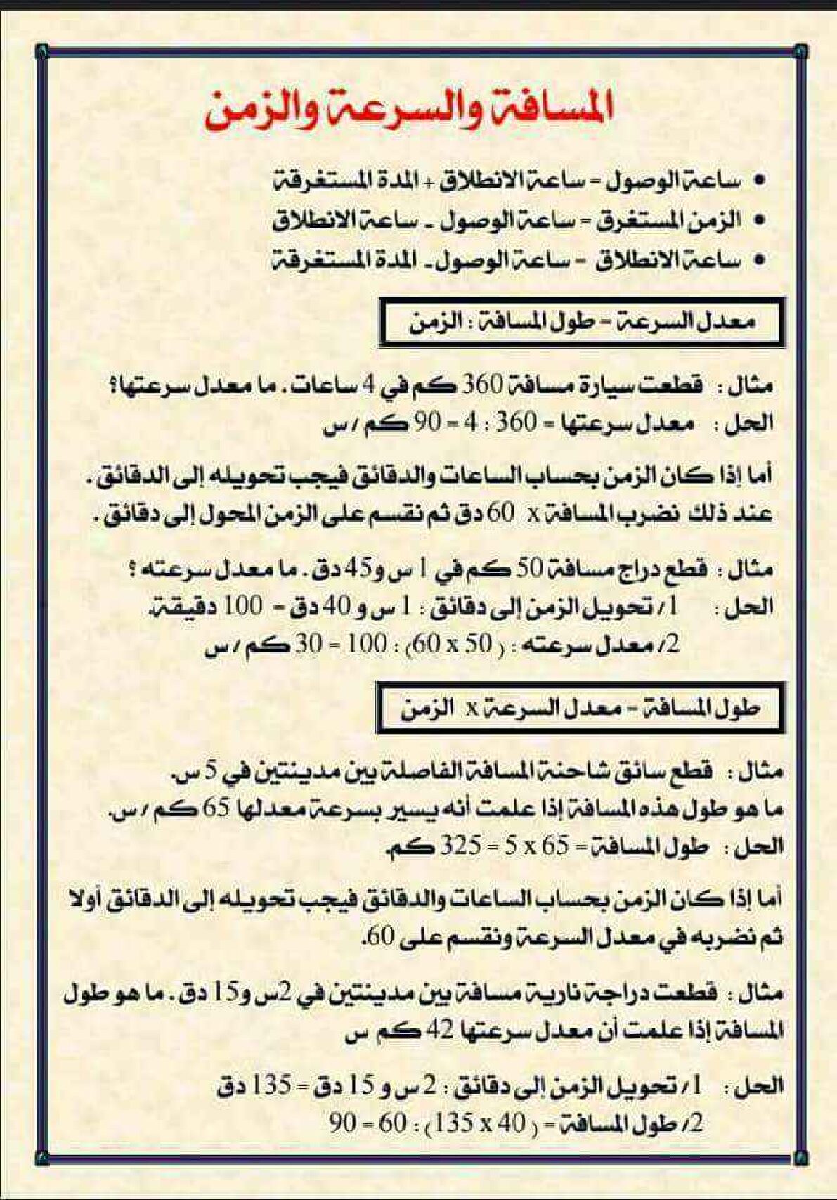 مراجعة درس المسافة والسرعة والزمن في الرياضيات 5 ابتدائي مادة الرياضيات للسنة الخامسة 5 ابتدائي دروس مفصلة ، فروض واختبارات، تمارين محلولة: ملخص دروس الرياضيات للسنة الخامسة ابتدائي
