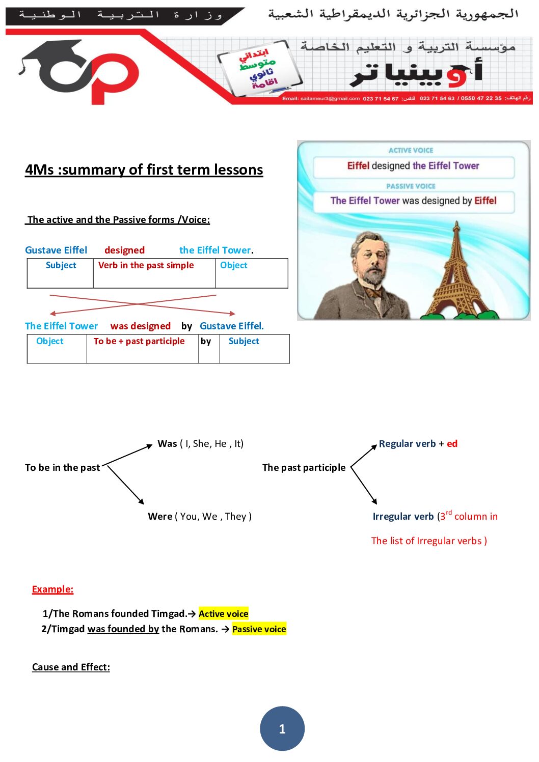 مراجعة دروس الفصل الأول في اللغة الانجليزية من مدرسة أوبينياتر 4 متوسط مادة اللغة الإنجليزية للسنة الرابعة 4 متوسط دروس مفصلة، فروض واختبارات، تمارين محلولة: ملخص Little genius class Qualifiers لغة انجليزية 4 متوسط في مادة اللغة الإنجليزية مستوى السنة الرابعة متوسط لتحضير شهادة التعليم المتوسط