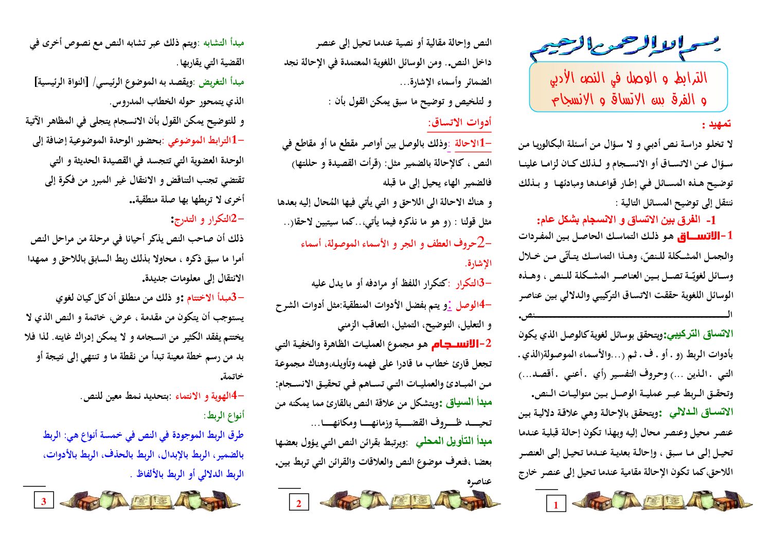 مطويات النصوص و التحليل و النقد الاتساق و الانسجام و أدوات الربط و الوصل