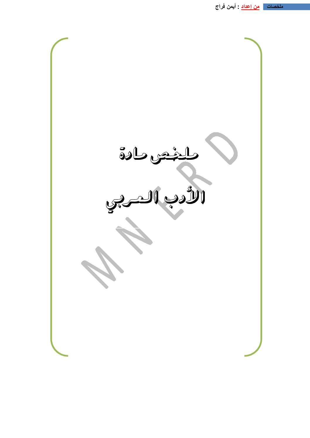 ملخصات الأدب العربي من إعداد الأستاذ أمن فراج 3 ثانوي
