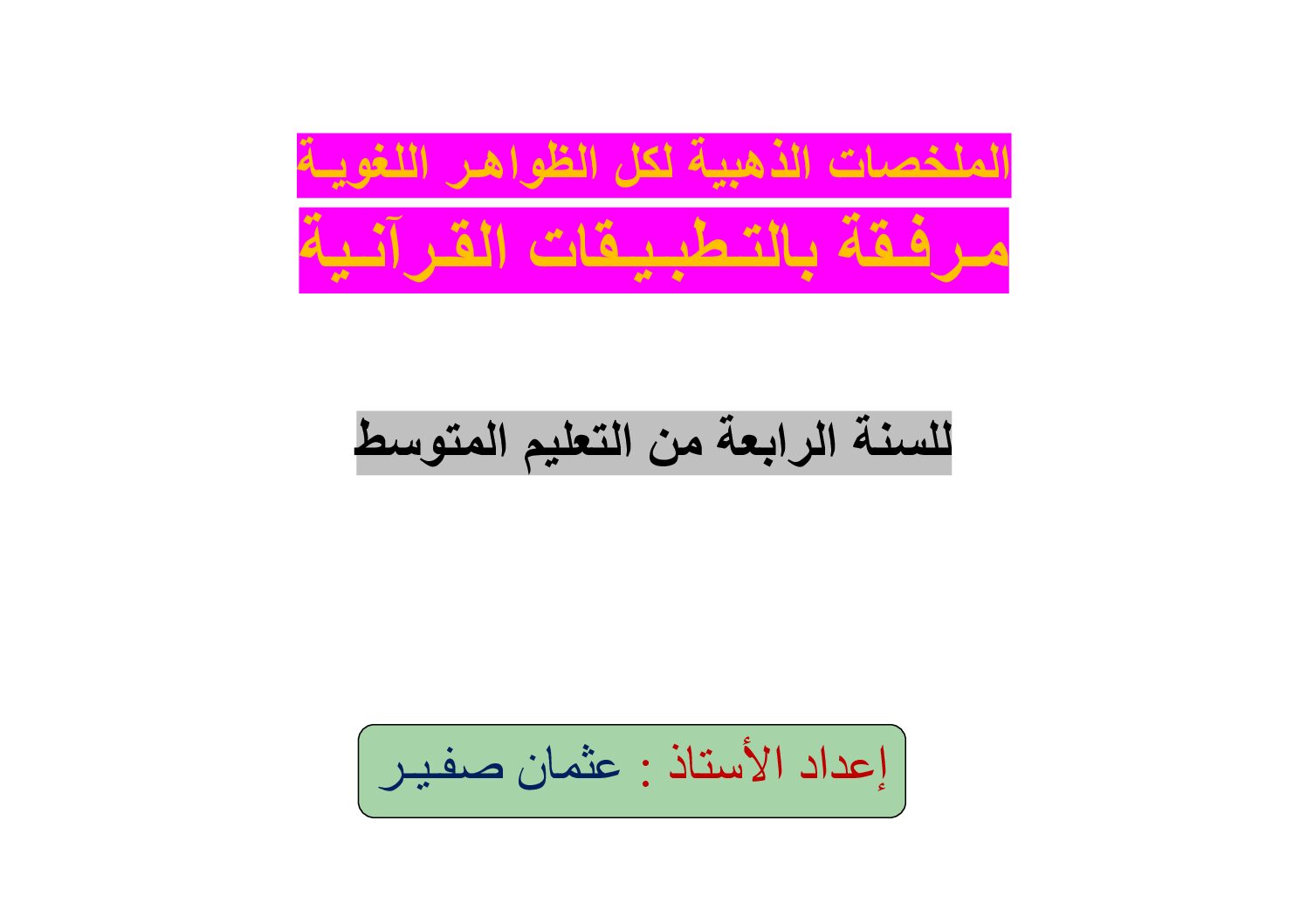 ملخصات الظواهر اللغوية مرفقة بتطبيقات قرآنية في اللغة العربية للاستاذ عثمان صفير 4 متوسط 6 مواضيع مع الحل في اللغة العربية مقترحة لشهادة التعليم المتوسط 4 متوسط استراتيجية الاجابة عن أسئلة مادة اللغة العربية 4 متوسط مادة اللغة العربية للسنة الرابعة 4 متوسط دروس مفصلة، فروض واختبارات، تمارين محلولة
