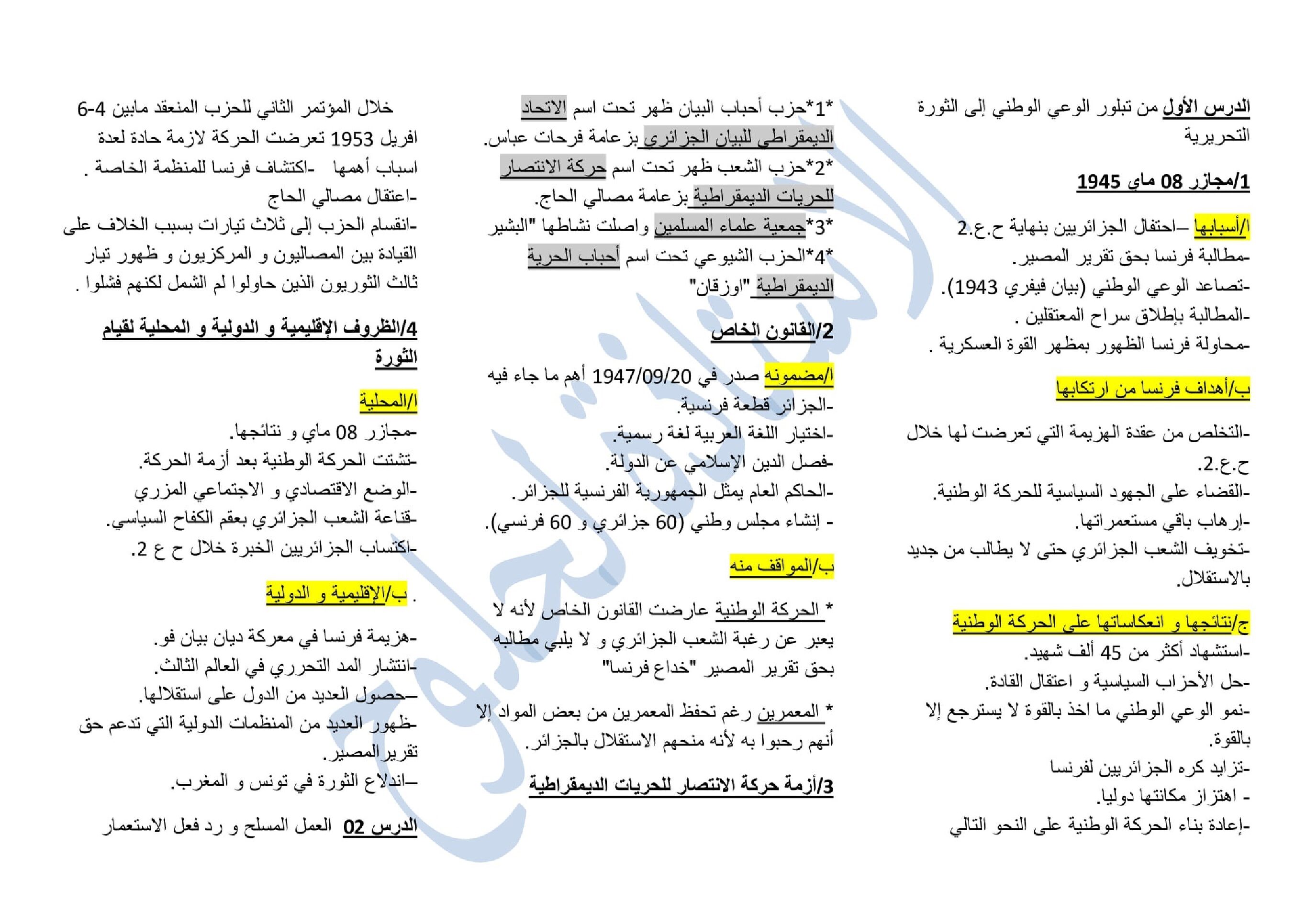 ملخص الوحدة 02 الجزائر بين 1945 1989 في مادة التاريخ للاستاذة لحلوح 3 ثانوي
