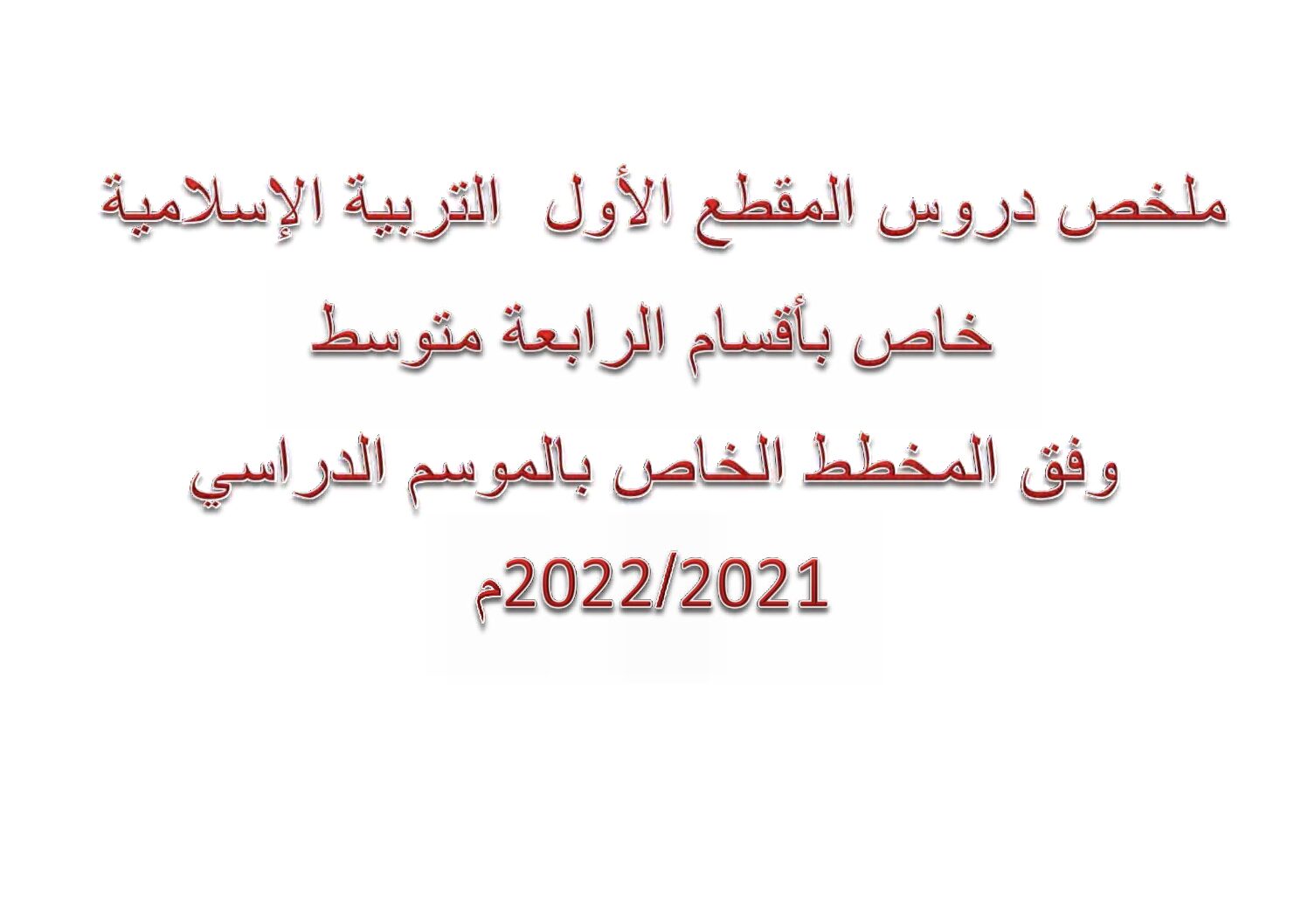 ملخص دروس المقطع الأول في مادة التربية الإسلامية 4 متوسط مادة التربية الإسلامية للسنة الرابعة 4 متوسط دروس مفصلة، فروض واختبارات، تمارين محلولة: المراجعات السنية لدروس التربية الإسلامية 4 متوسط