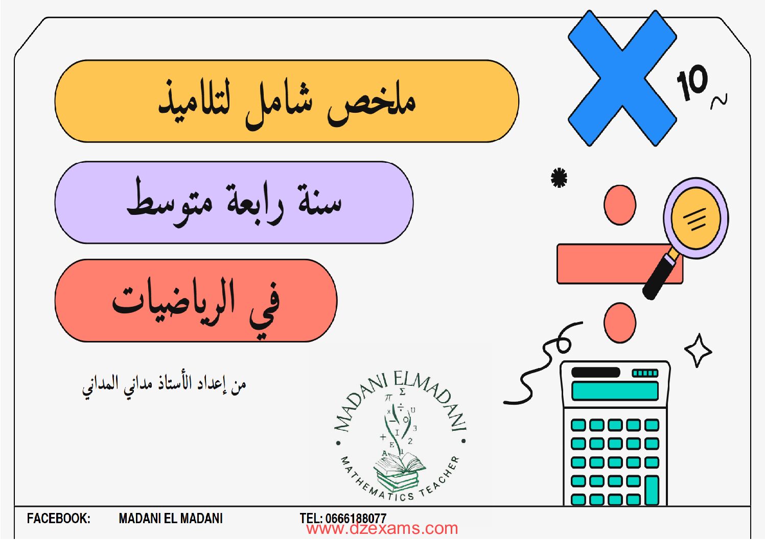 ملخص شامل للتلاميذ في مادة الرياضيات للأستاذ مداني المداني 4 متوسط أهم الخواص التي تساعد على البرهان في الهندسة 4 متوسط مادة الرياضيات للسنة الرابعة 4 متوسط : ملخص لدروس الرياضيات سنة رابعة متوسط maths 4AM: ملفات تعليمية في مادة الرياضيات لتحضير شهادة التعليم المتوسط