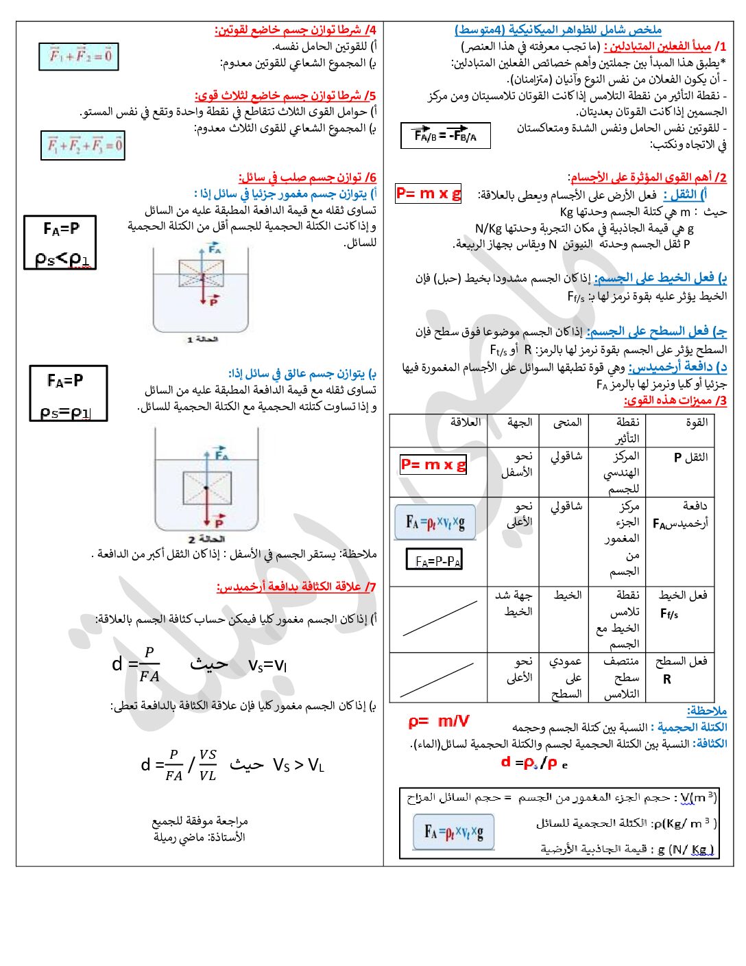 ملخص شامل لميدان الظواهر الميكانيكية في الفيزياء 4 متوسط مادة العلوم الفيزيائية للسنة الرابعة 4 متوسط دروس مفصلة، فروض واختبارات، تمارين محلولة: المكتسبات القبلية في العلوم الفيزيائية للأستاذ خليفي محمد 4 متوسط ، تحضير شهادة التعليم المتوسط