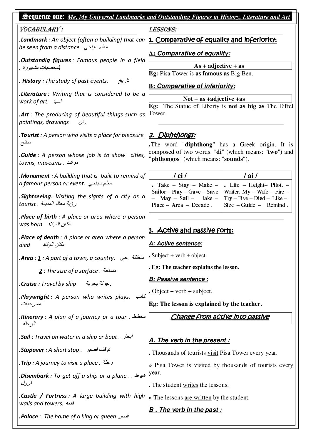 ملخص لدروس اللغة الإنجليزية الفصل الأول من مدرسة أوبينياتر 4 متوسط