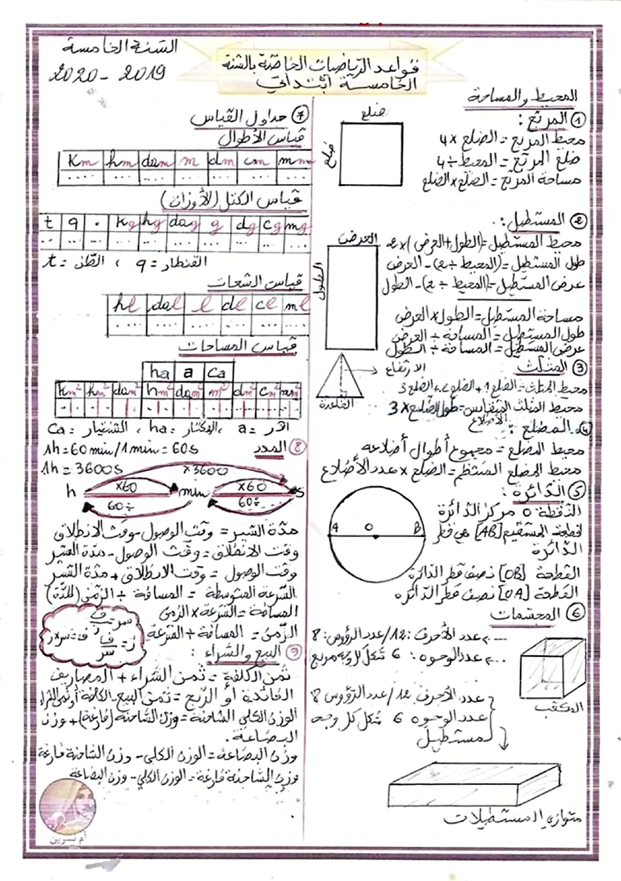 ملف شامل لقوانين وقواعد الرياضيات الجيل الثاني نموذج 02 5 ابتدائي مادة الرياضيات للسنة الخامسة 5 ابتدائي دروس مفصلة ، فروض واختبارات، تمارين محلولة: ملخص دروس الرياضيات للسنة الخامسة ابتدائي