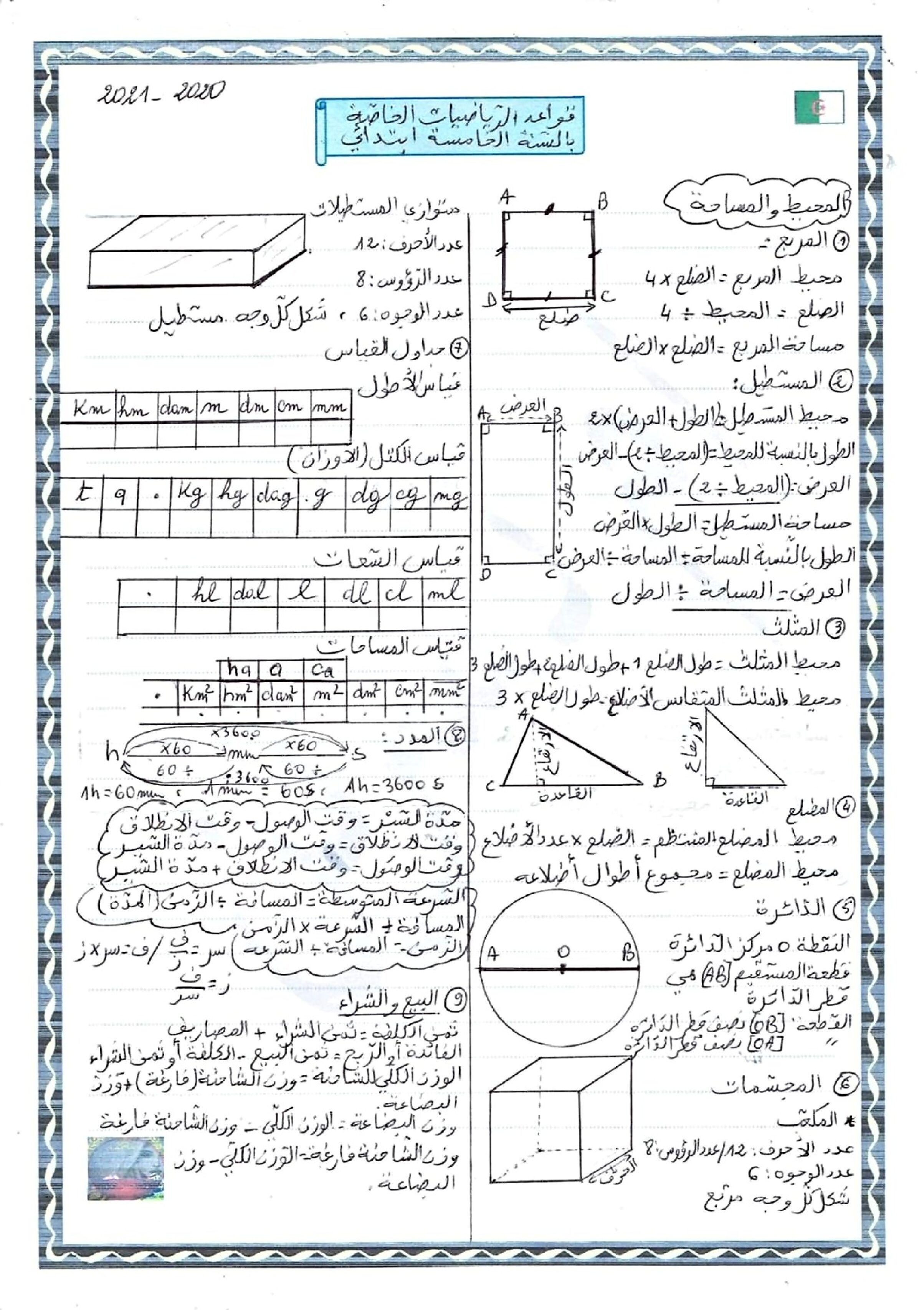 ملف شامل لقوانين وقواعد الرياضيات الجيل الثاني نموذج 01 5 ابتدائي مادة الرياضيات للسنة الخامسة 5 ابتدائي دروس مفصلة ، فروض واختبارات، تمارين محلولة: ملخص دروس الرياضيات للسنة الخامسة ابتدائي