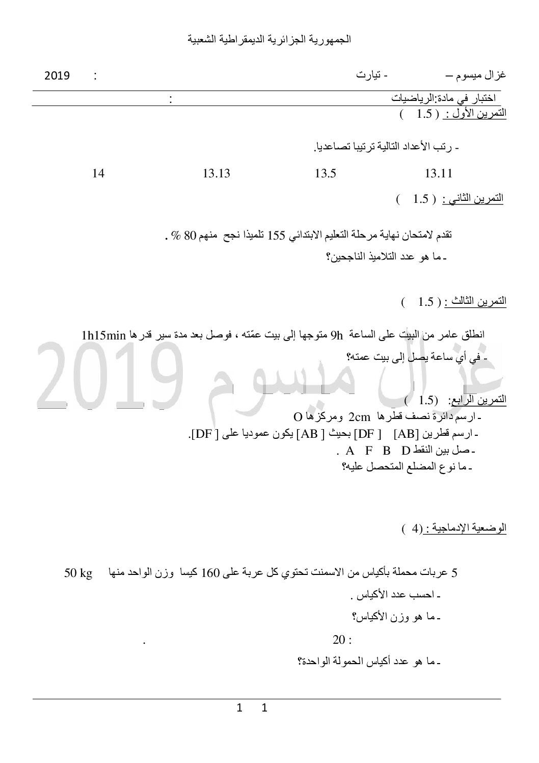 الرياضيات السنة الخامسة ابتدائي