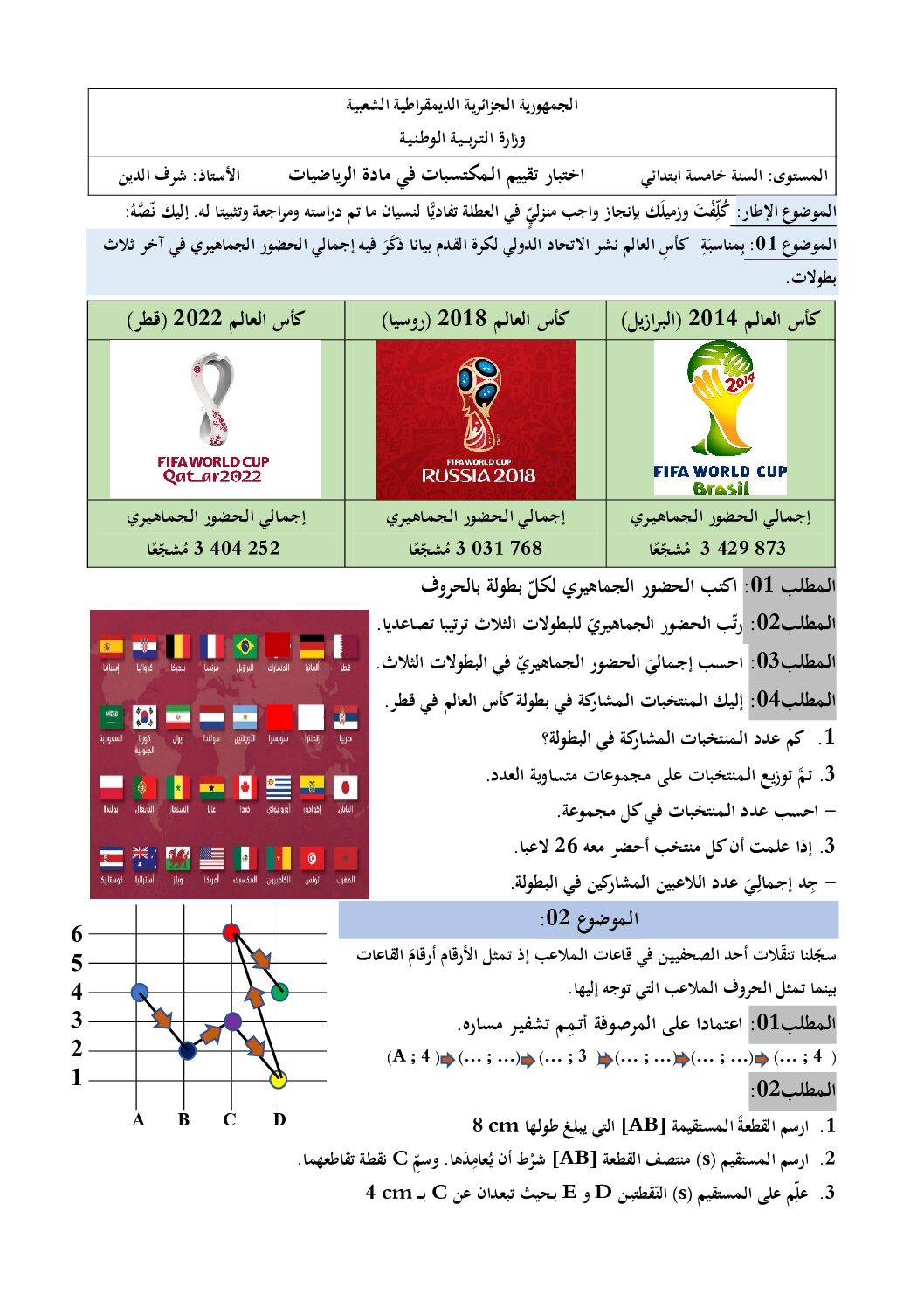 مادة الرياضيات للسنة الخامسة 5 ابتدائي دروس مفصلة، فروض واختبارات، تمارين محلولة : نموذج لإمتحان تقييم المكتسبات رقم 7- في مادة الرياضيات مستوى السنة الخامسة ابتدائي الجيل الثاني ، السنة الدراسية: 2026/2027 مع التصحيح