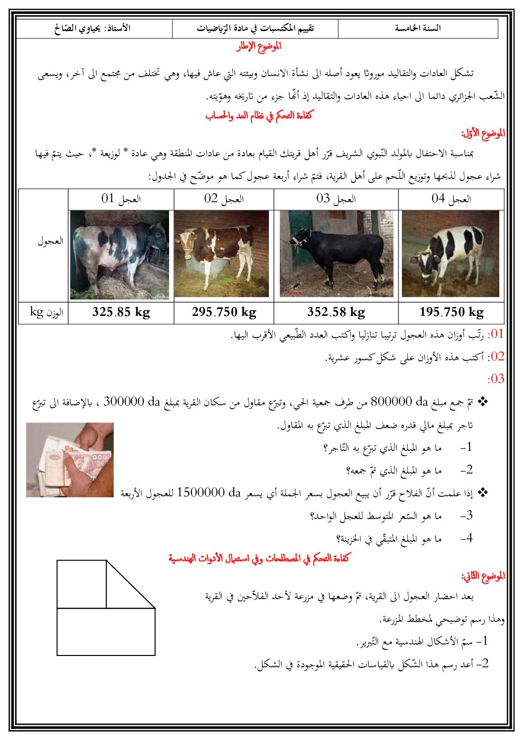 الرياضيات السنة الخامسة ابتدائي