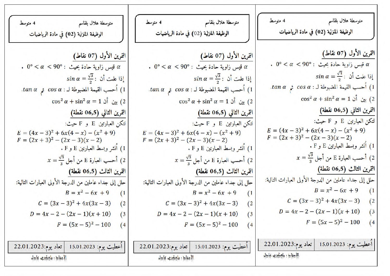 واجب منزلي في الرياضيات السنة الرابعة متوسط رقم 6