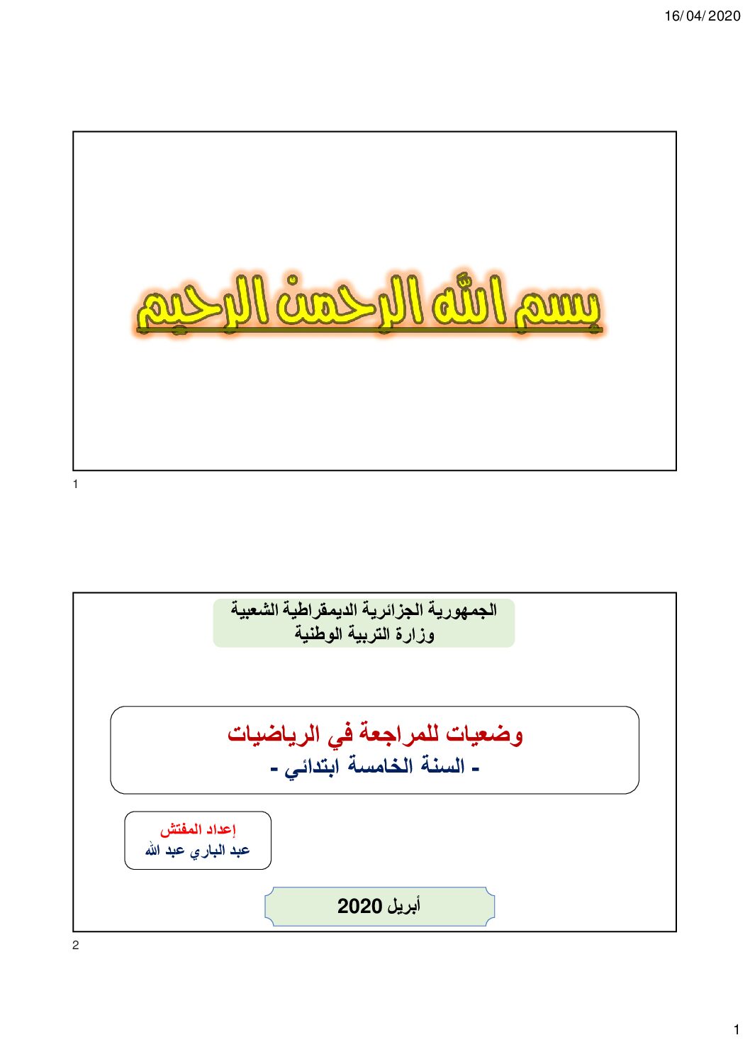 الرياضيات السنة الخامسة ابتدائي