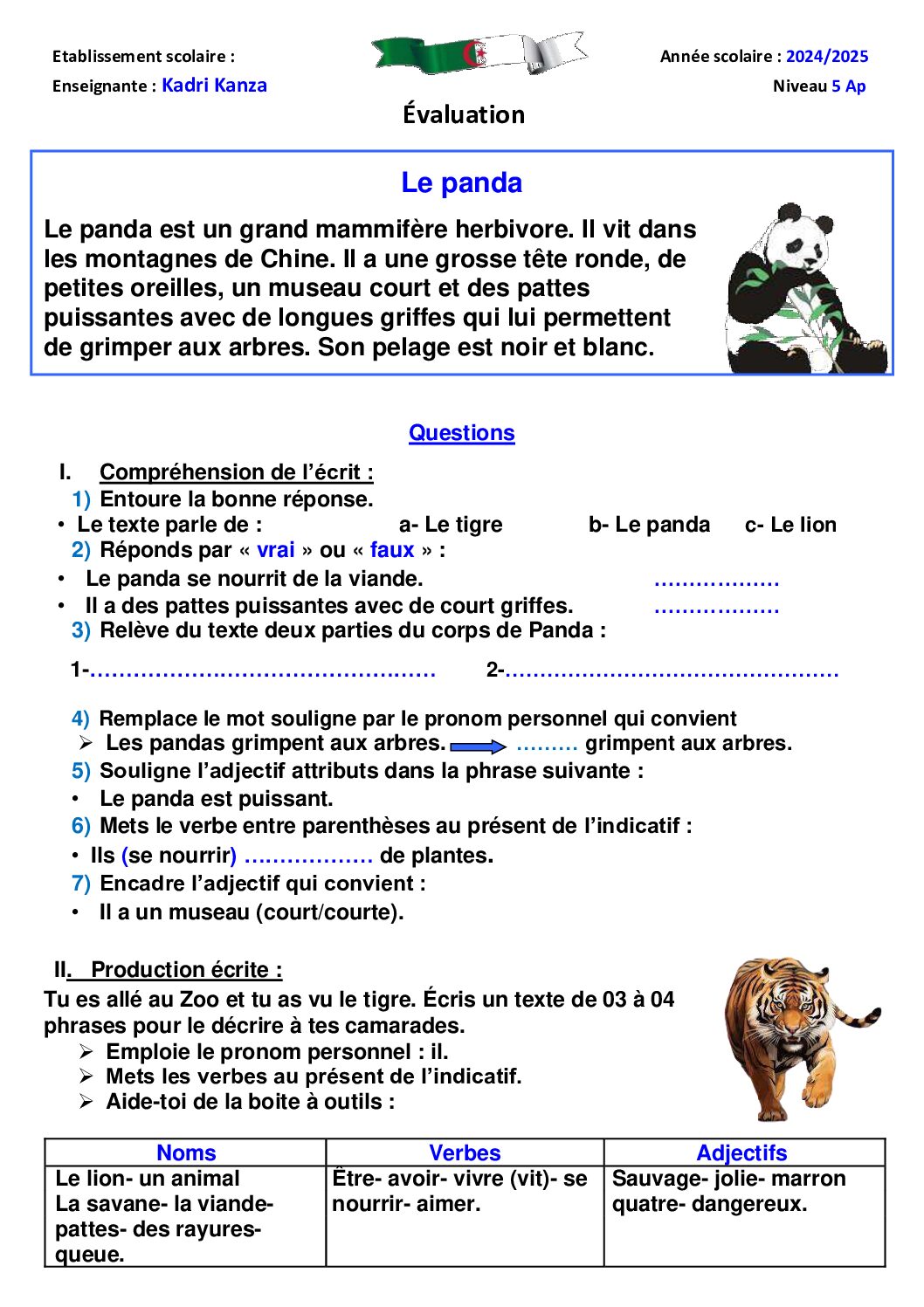 مادة اللغة الفرنسية للسنة الخامسة ابتدائي : نموذج لإمتحان في الفصل الأول رقم 131- في مادة اللغة الفرنسية مستوى السنة الخامسة ابتدائي الجيل الثاني ، السنة الدراسية: 2025/2026 مع التصحيح يمكن تصفح الإختبار مباشرة عبر موقع الدراسة الجزائري أو تحميله مباشرة بصيغة PDF بالضغط أعلاه على: .: تحميل :. اللغة الفرنسية السنة الخامسة ابتدائي