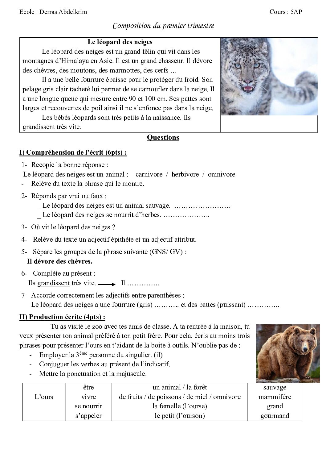 أكمل القراءة »إختبار الفصل الأول في اللغة الفرنسية السنة الخامسة ابتدائي رقم 129 مع التصحيح