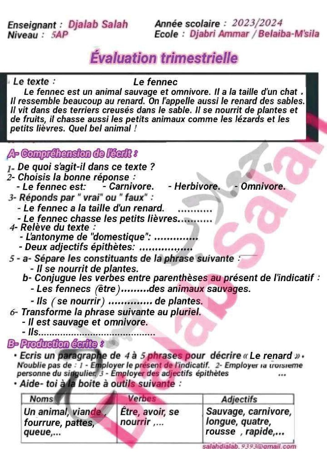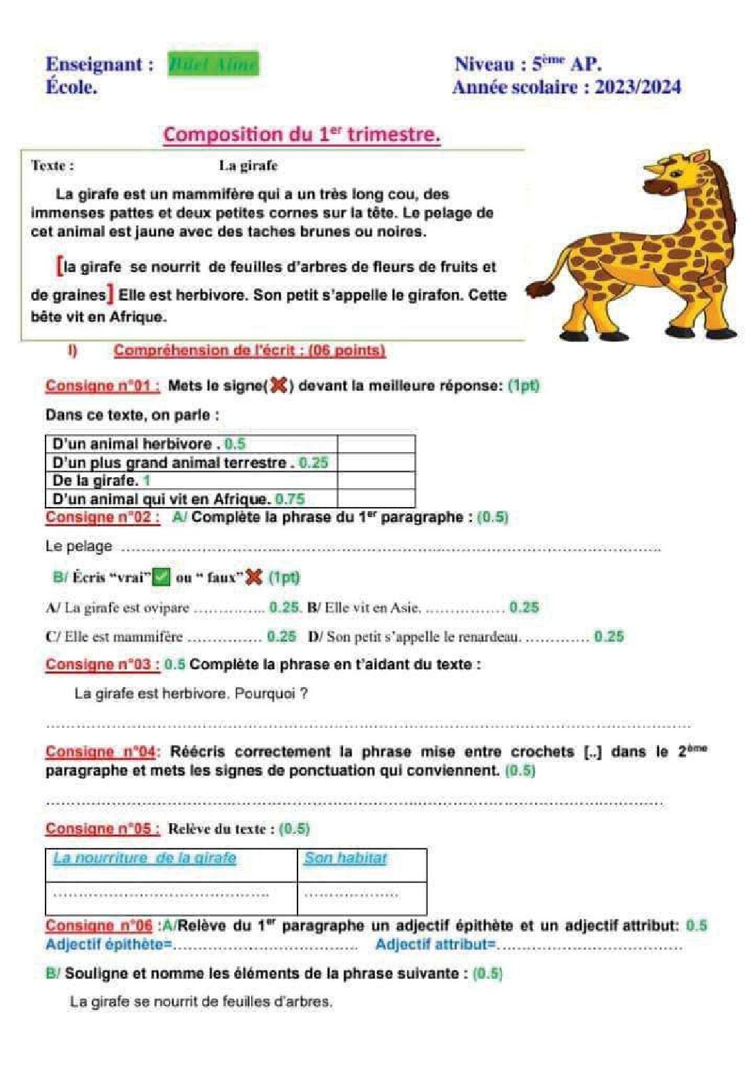 أكمل القراءة »إختبار الفصل الأول في اللغة الفرنسية السنة الخامسة ابتدائي رقم 115 مع التصحيح