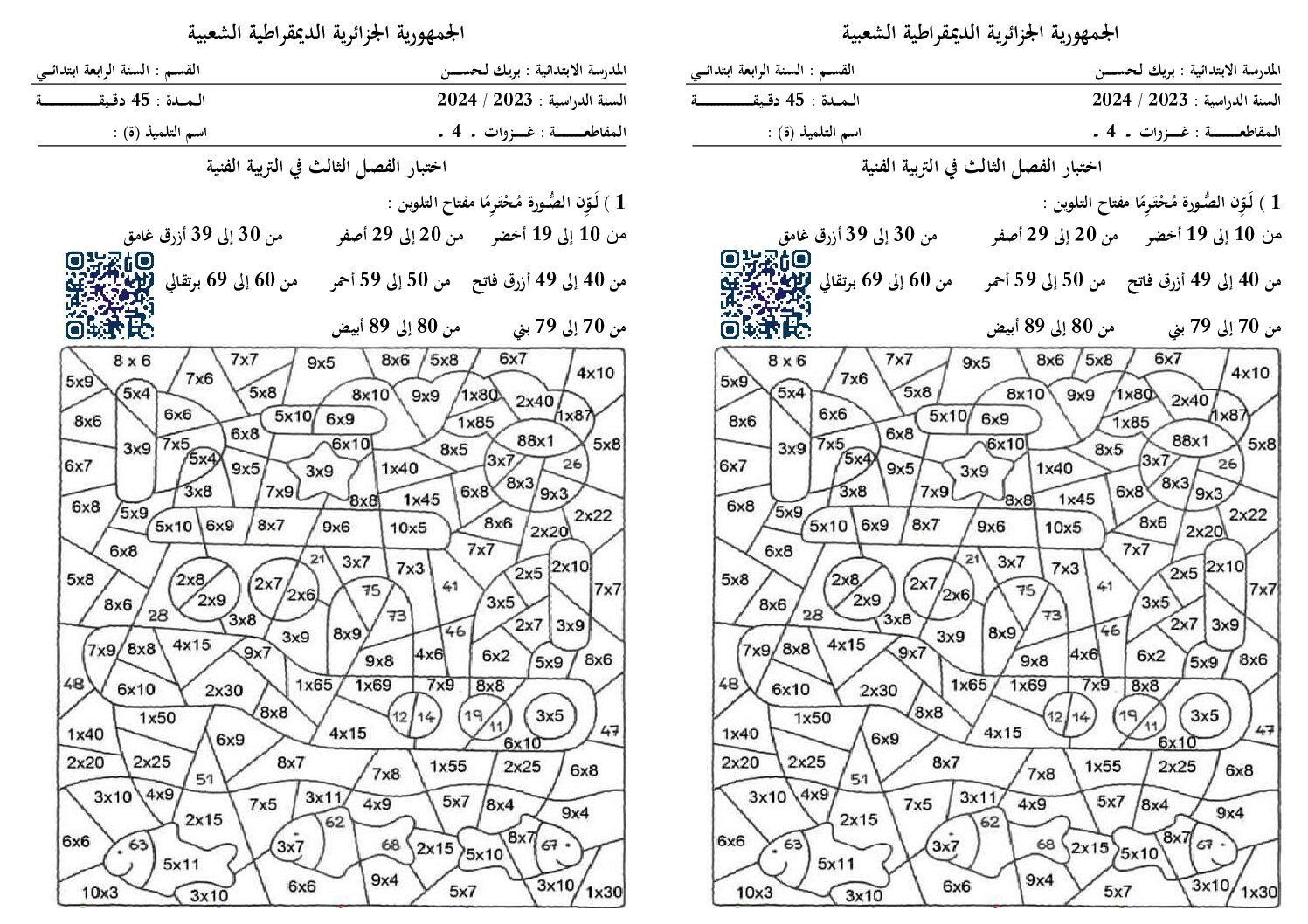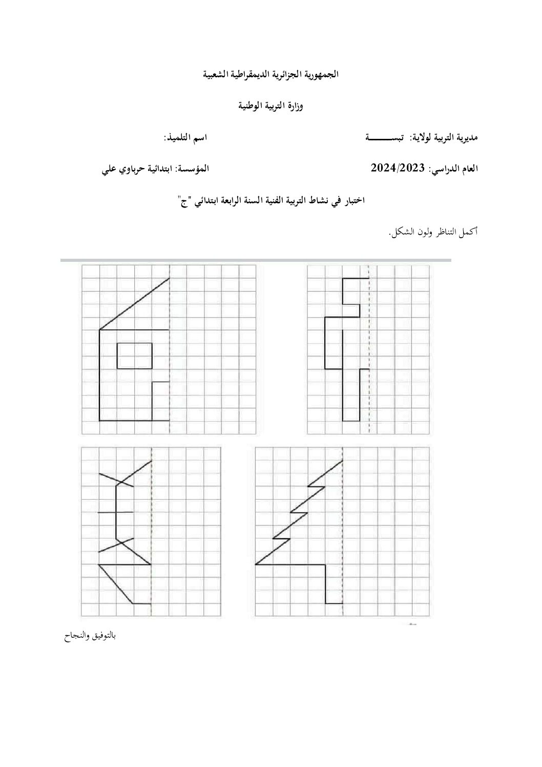 إختبار في التربية الفنية السنة الرابعة ابتدائي رقم 29