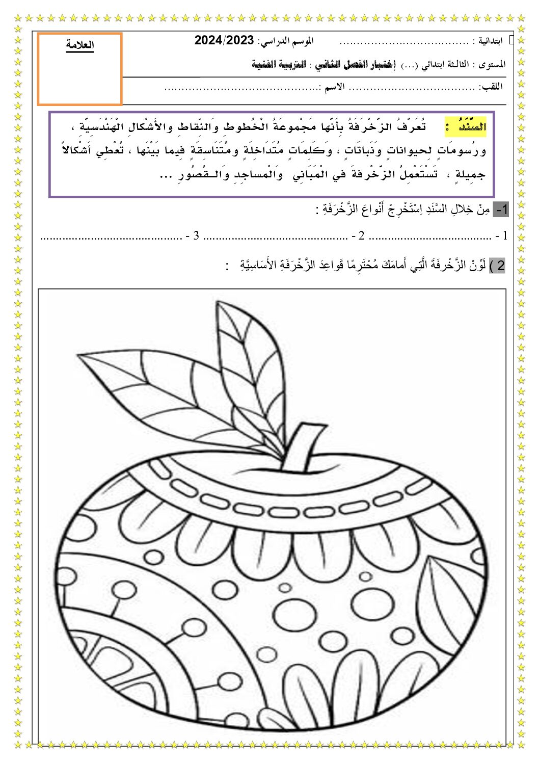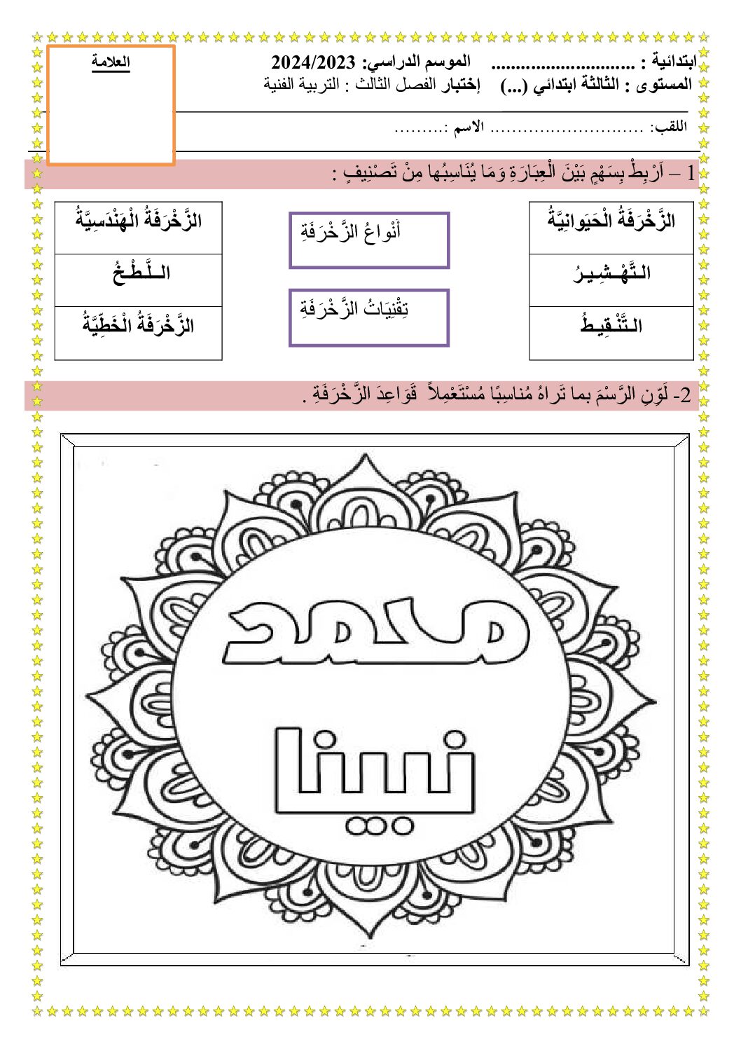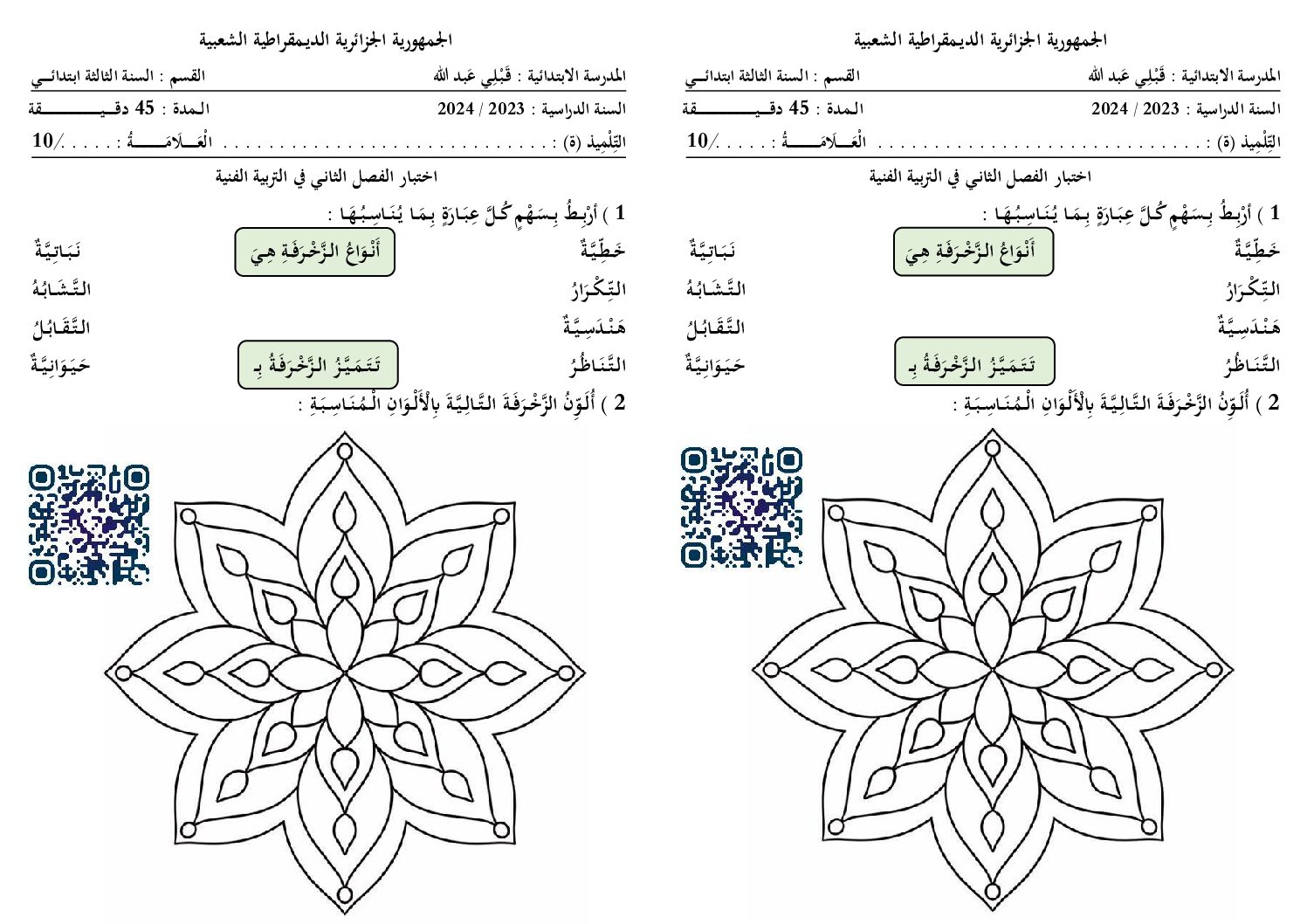 إختبار في التربية الفنية السنة الثالثة ابتدائي رقم 41 مع التصحيح