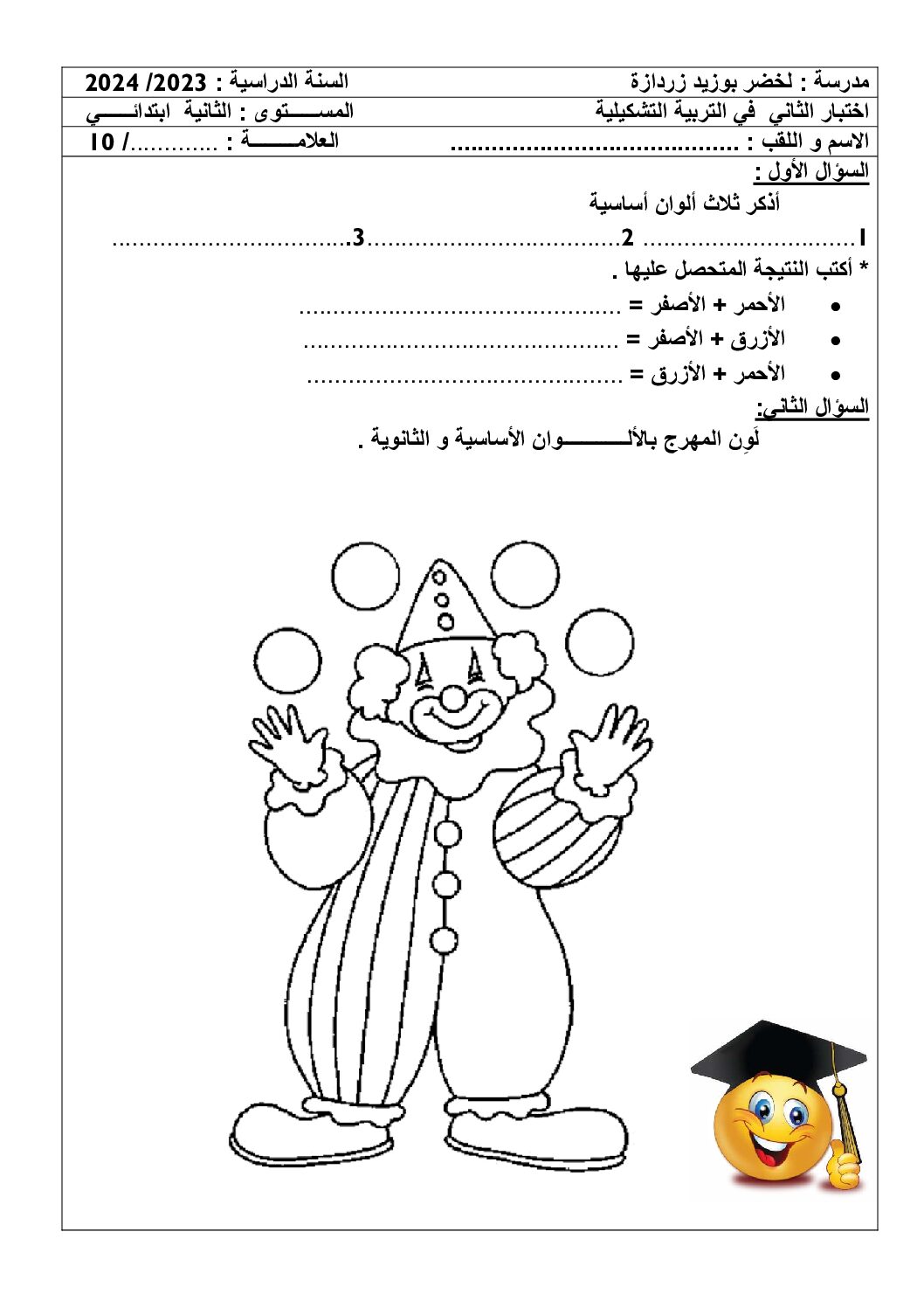 إختبار في التربية الفنية السنة الأولى ابتدائي رقم 43