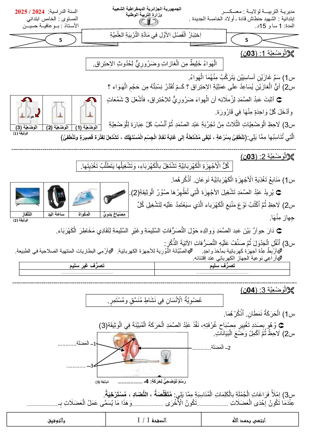 مادة التربية العلمية والتكنولوجية للسنة الخامسة 5 ابتدائي دروس مفصلة ، فروض واختبارات، تمارين محلولة : نموذج لإمتحان في الفصل الأول رقم 54- في مادة التربية العلمية مستوى السنة الخامسة ابتدائي الجيل الثاني ، السنة الدراسية: 2025/2026 مع التصحيح يمكن تصفح الإختبار مباشرة عبر موقع الدراسة الجزائري أو تحميله مباشرة بصيغة PDF بالضغط أعلاه على: .: تحميل :. التربية العلمية السنة الخامسة …