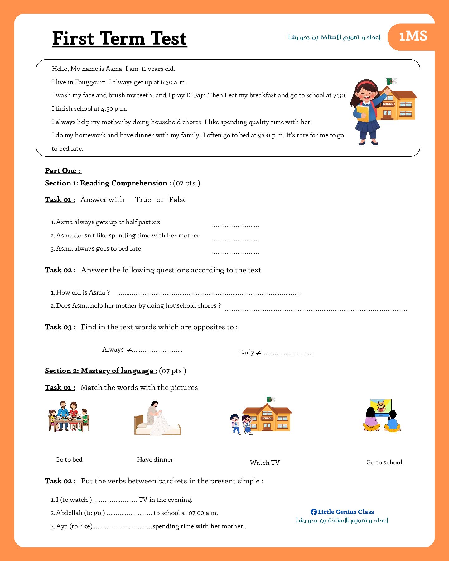 أكمل القراءة »فرض في اللغة الانجليزية الفصل الأول السنة الأولى متوسط رقم 85 مع التصحيح