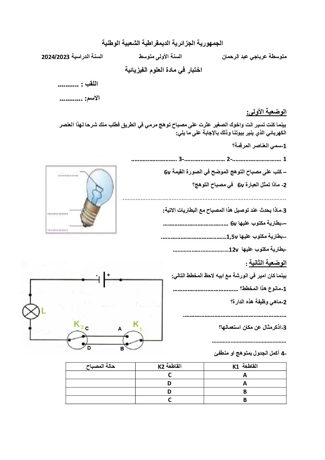 مادة العلوم الفيزيائية والتكنولوجيا للسنة الأولى 1 متوسط دروس مفصلة، فروض واختبارات، تمارين محلولة: نموذج لإمتحان في الفصل الأول رقم 81- في مادة العلوم الفيزيائية مستوى السنة الأولى متوسط الجيل الثاني ، السنة الدراسية: 2025/2026 مع التصحيح يمكن تصفح الإختبار مباشرة عبر موقع الدراسة الجزائري أو تحميله مباشرة بصيغة PDF بالضغط أعلاه على: .: تحميل :. العلوم الفيزيائية السنة الأولى متوسط