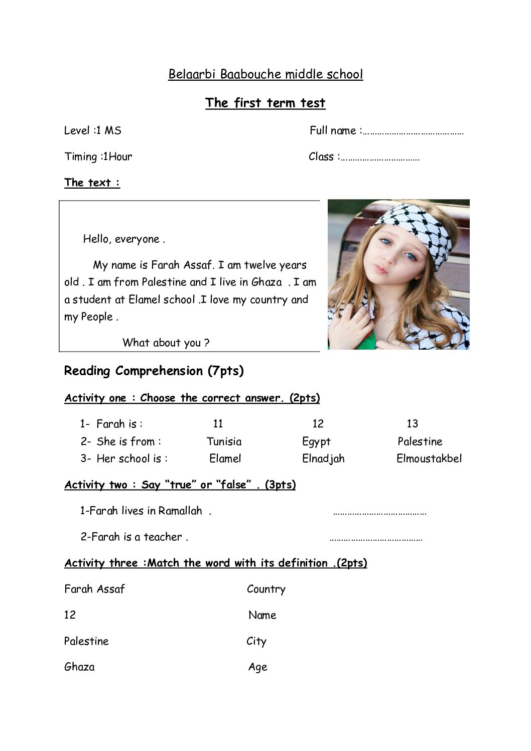 أكمل القراءة »فرض في اللغة الانجليزية الفصل الأول السنة الأولى متوسط رقم 74 مع التصحيح