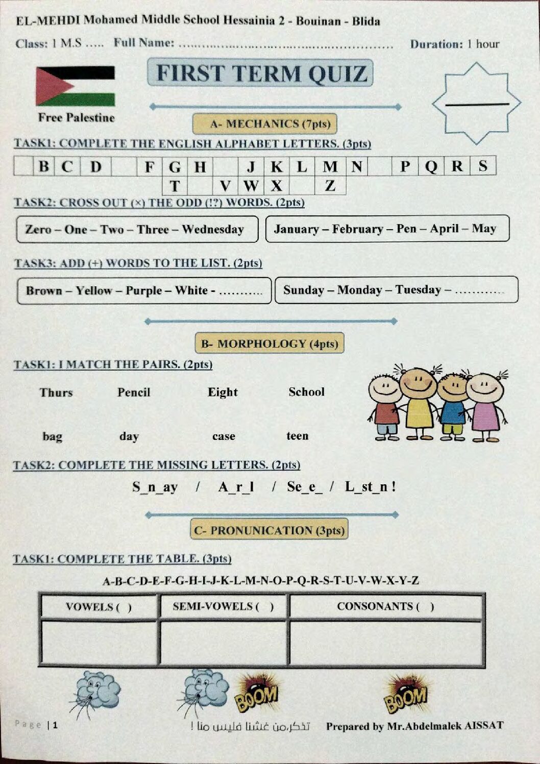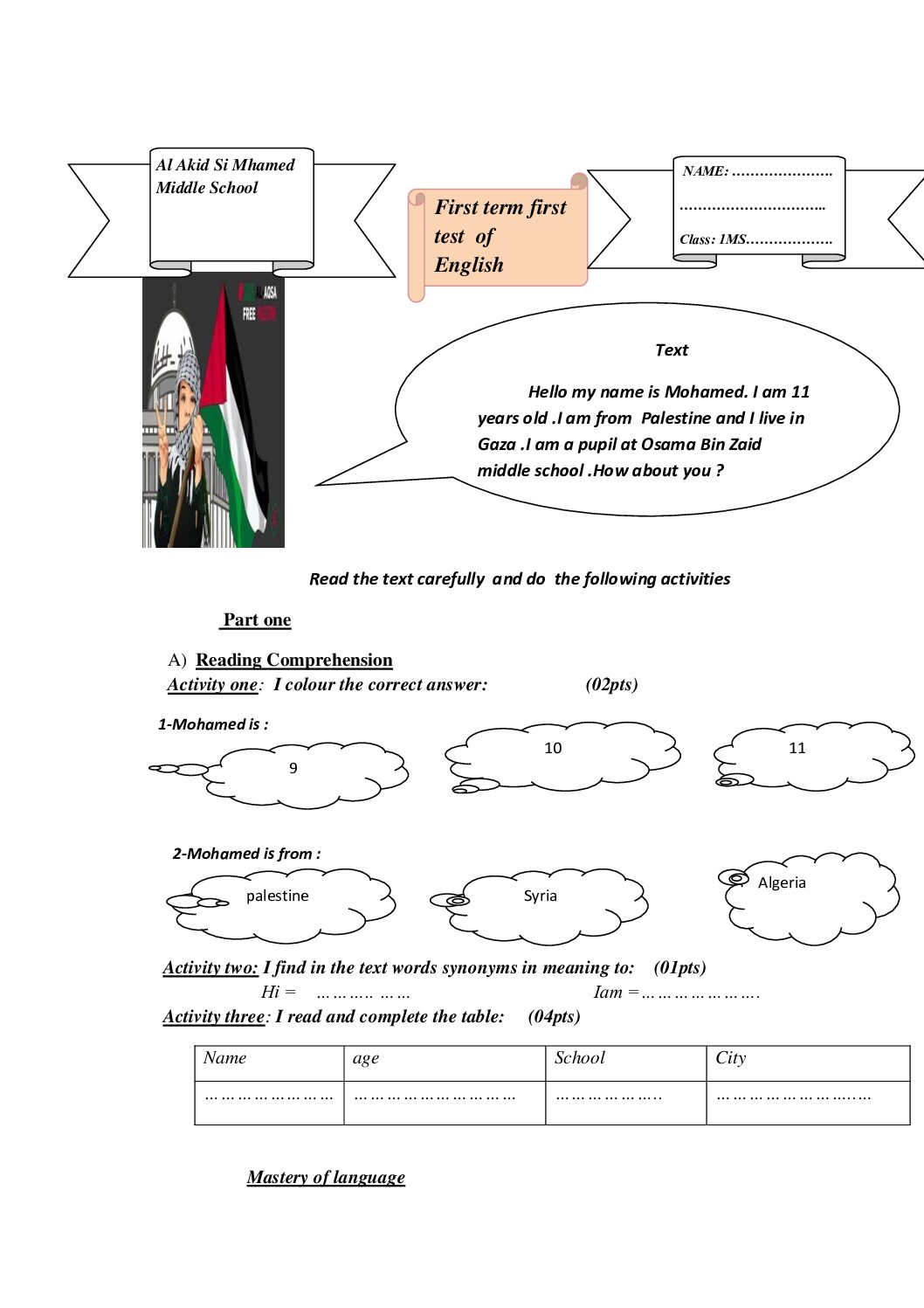 أكمل القراءة »فرض في اللغة الانجليزية الفصل الأول السنة الأولى متوسط رقم 73 مع التصحيح