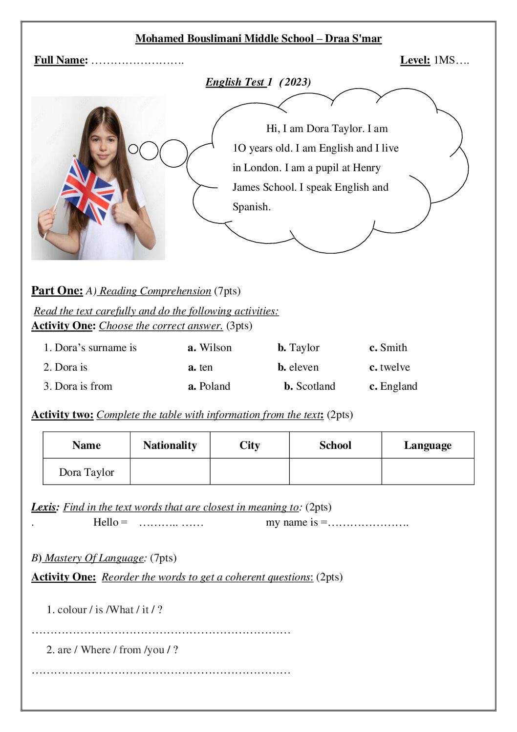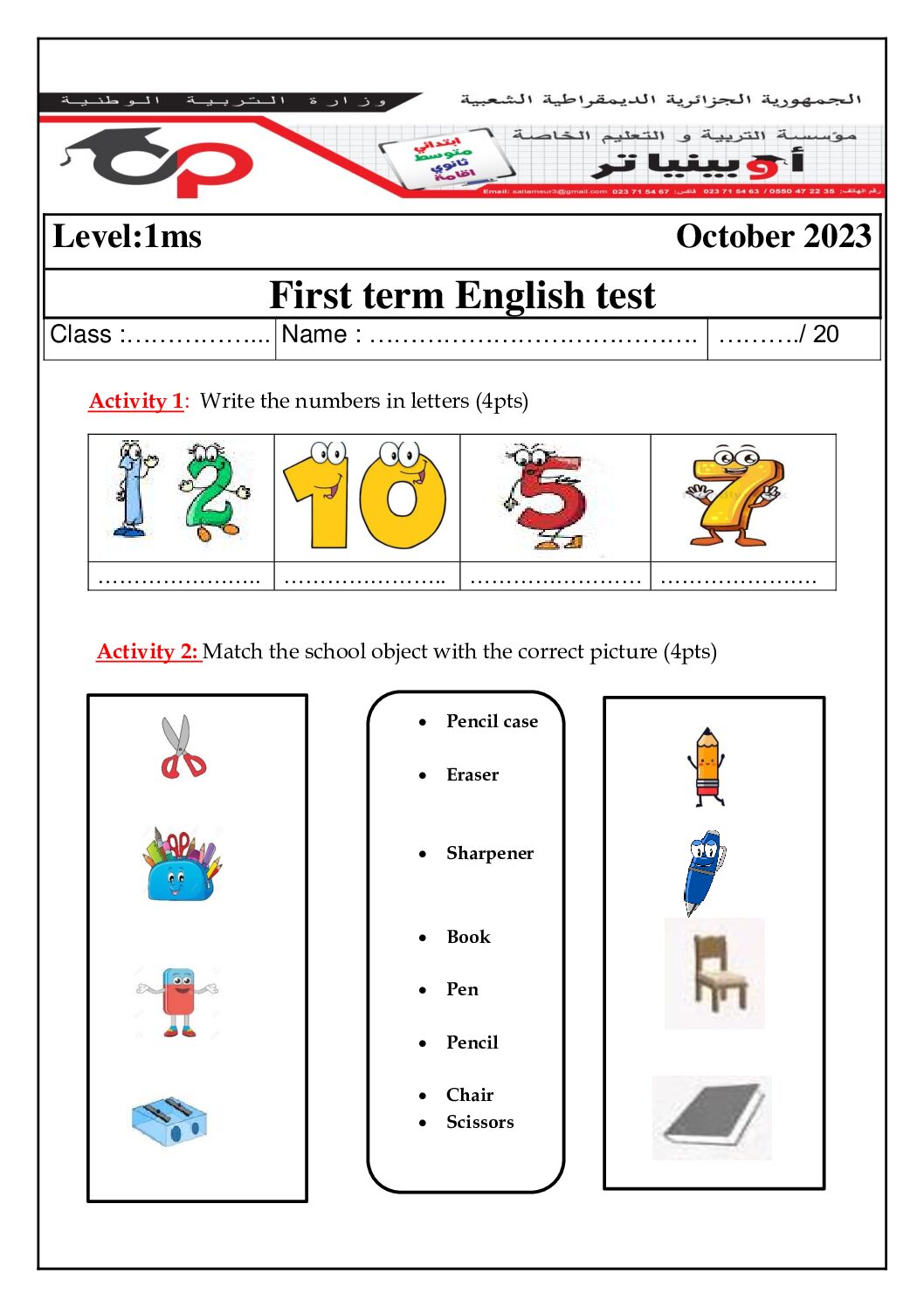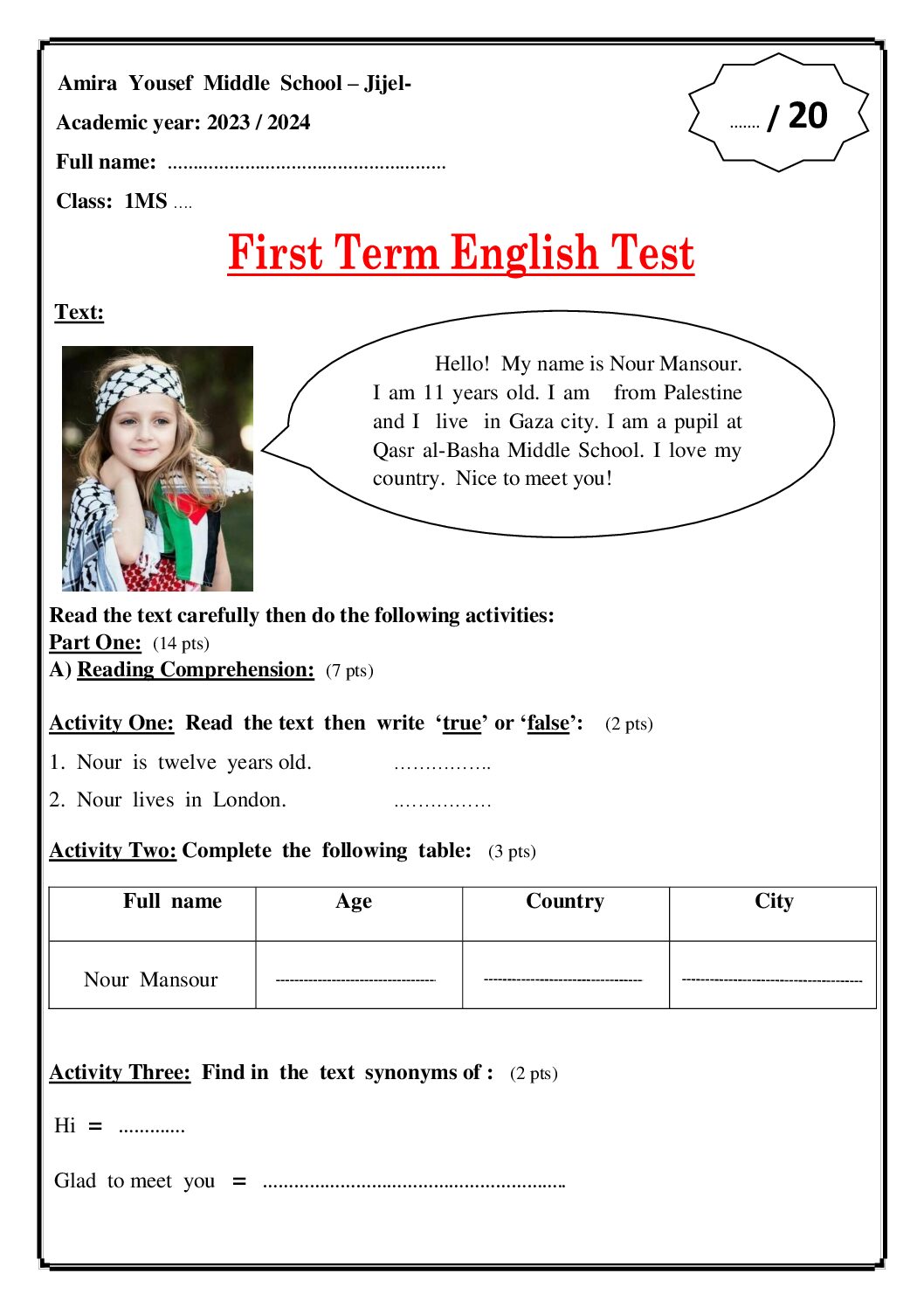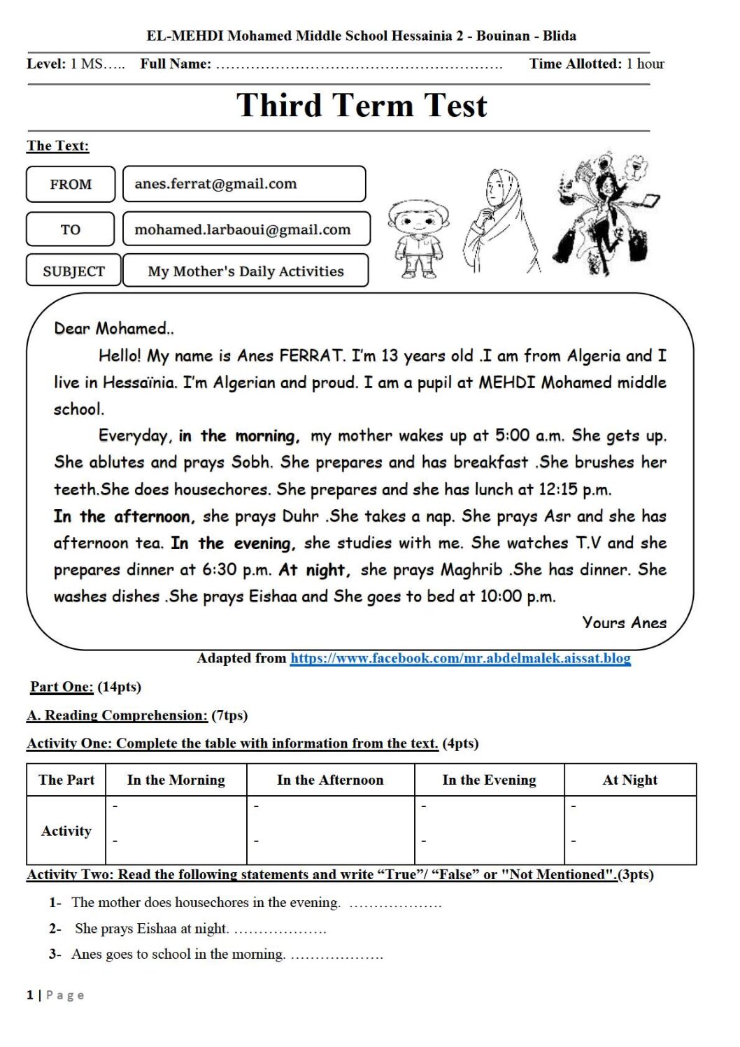أكمل القراءة »فرض في اللغة الانجليزية الفصل الأول السنة الأولى متوسط رقم 70 مع التصحيح