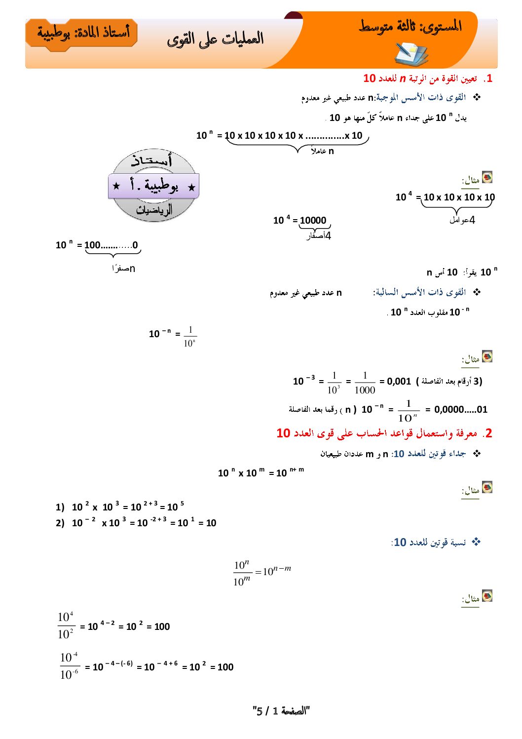 مادة الرياضيات للسنة الثالثة 3 متوسط دروس مفصلة، فروض واختبارات، تمارين محلولة: ملخص دروس المقطع 3 القوى في مادة الرياضيات 3 متوسط يمكن تصفح الملف مباشرة عبر موقع الدراسة الجزائري أو تحميله مباشرة بصيغة PDF بالضغط أعلاه على: .: تحميل :. الرياضبات السنة الثالثة متوسط