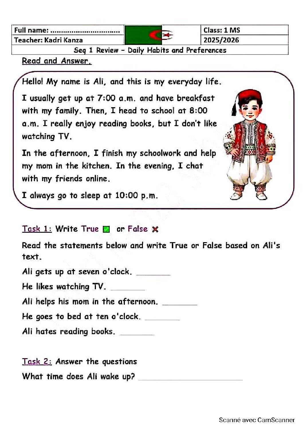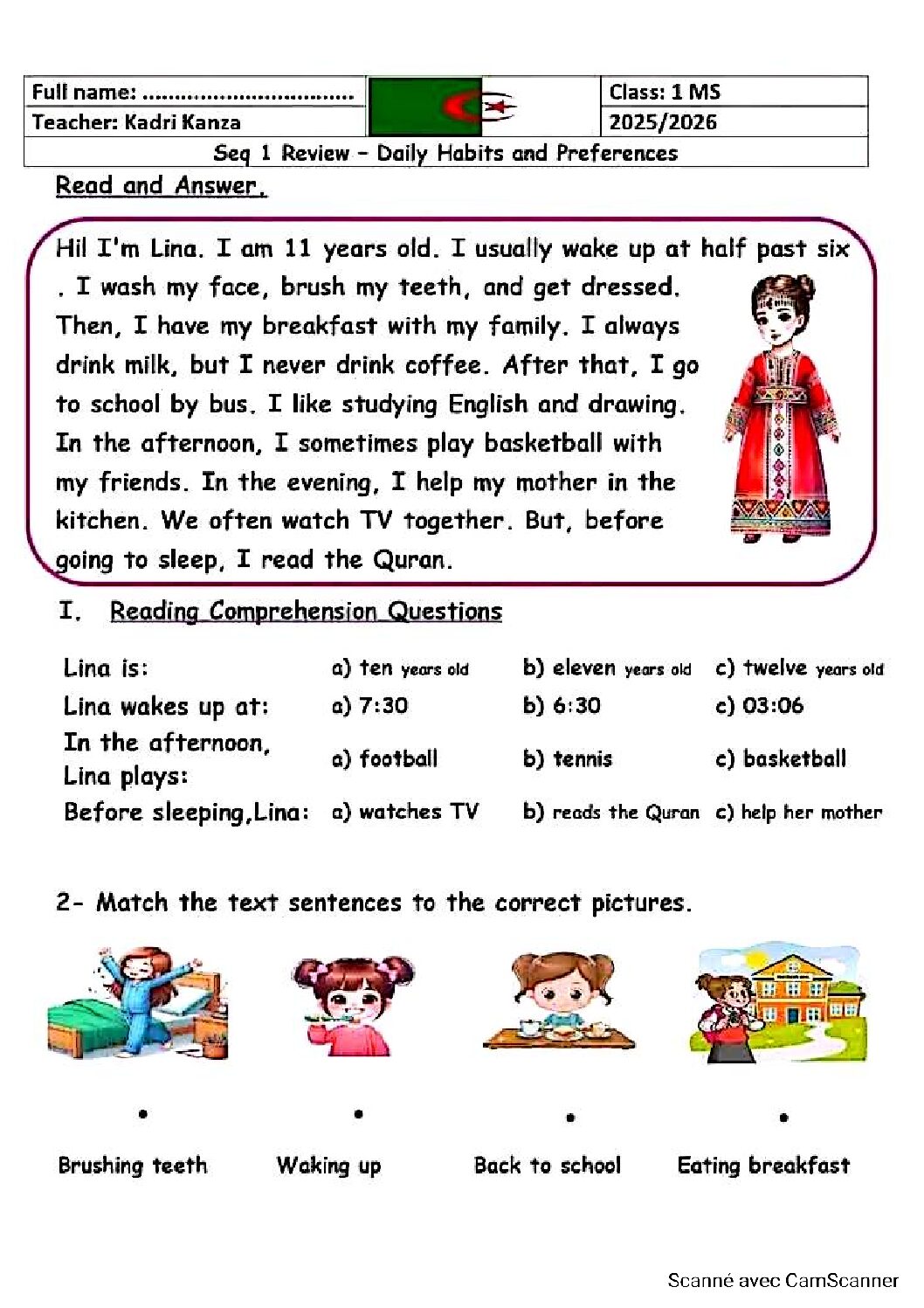 أكمل القراءة »اختبار في اللغة الانجليزية الفصل الأول السنة الأولى متوسط رقم 71 مع التصحيح