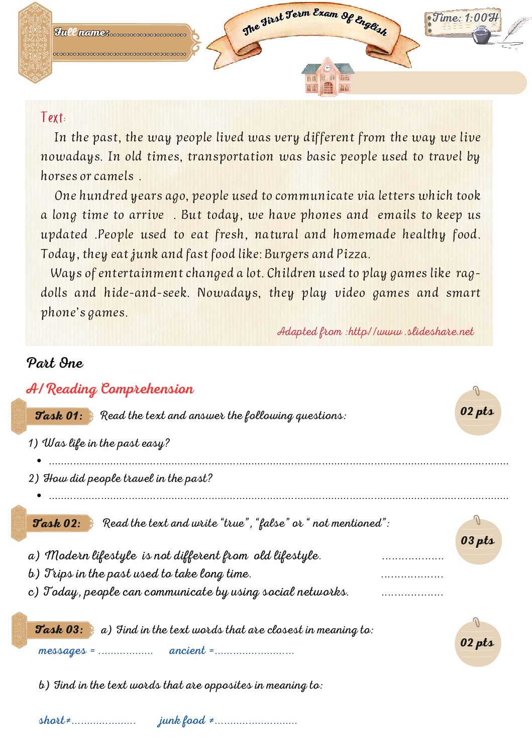 أكمل القراءة »اختبار في اللغة الانجليزية الفصل الأول السنة الأولى متوسط رقم 68 مع التصحيح