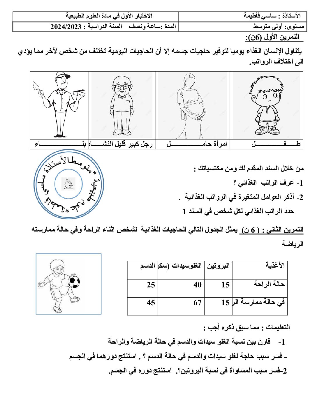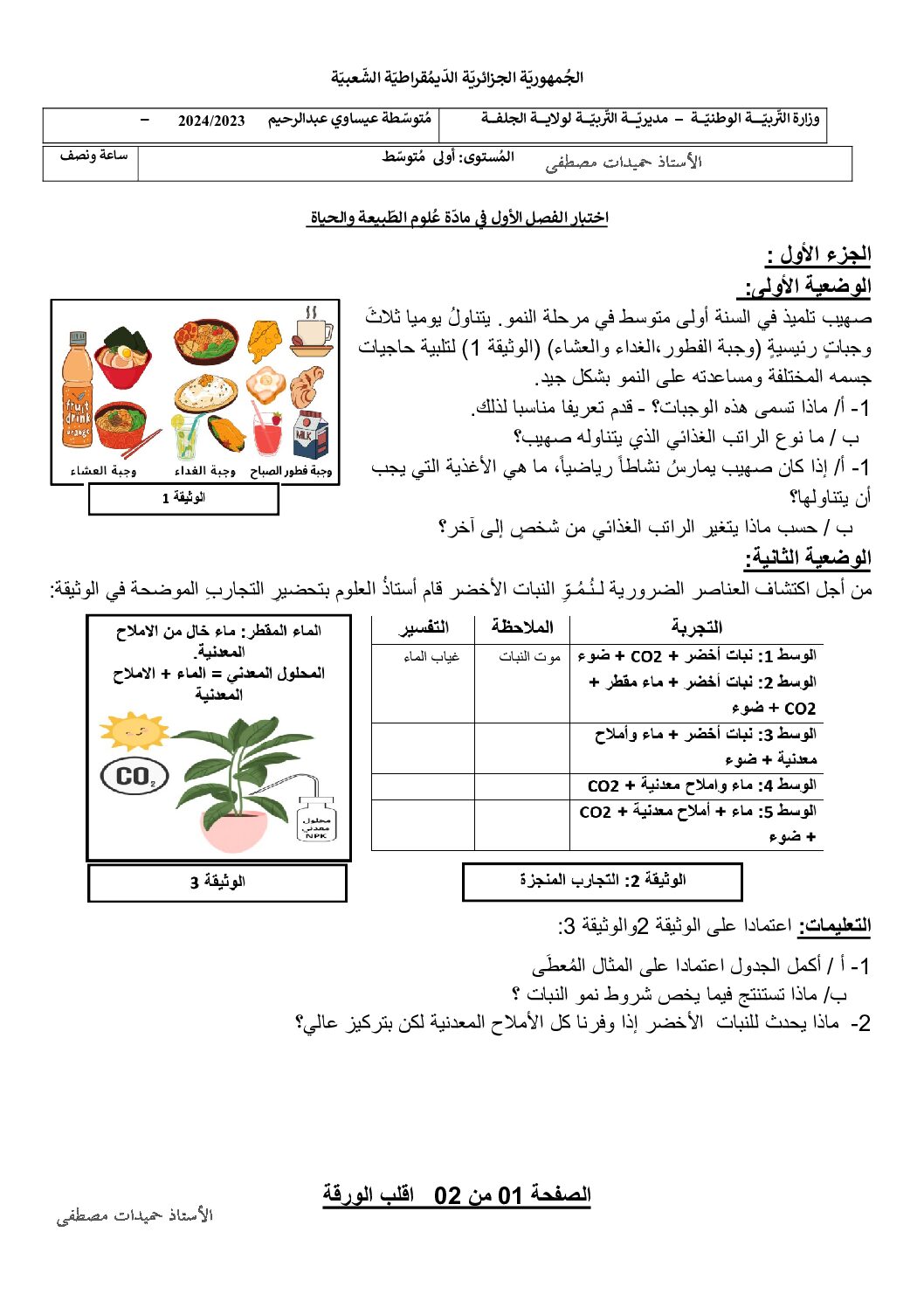 أكمل القراءة »فرض في العلوم الطبيعية الفصل الأول السنة الأولى متوسط رقم 47