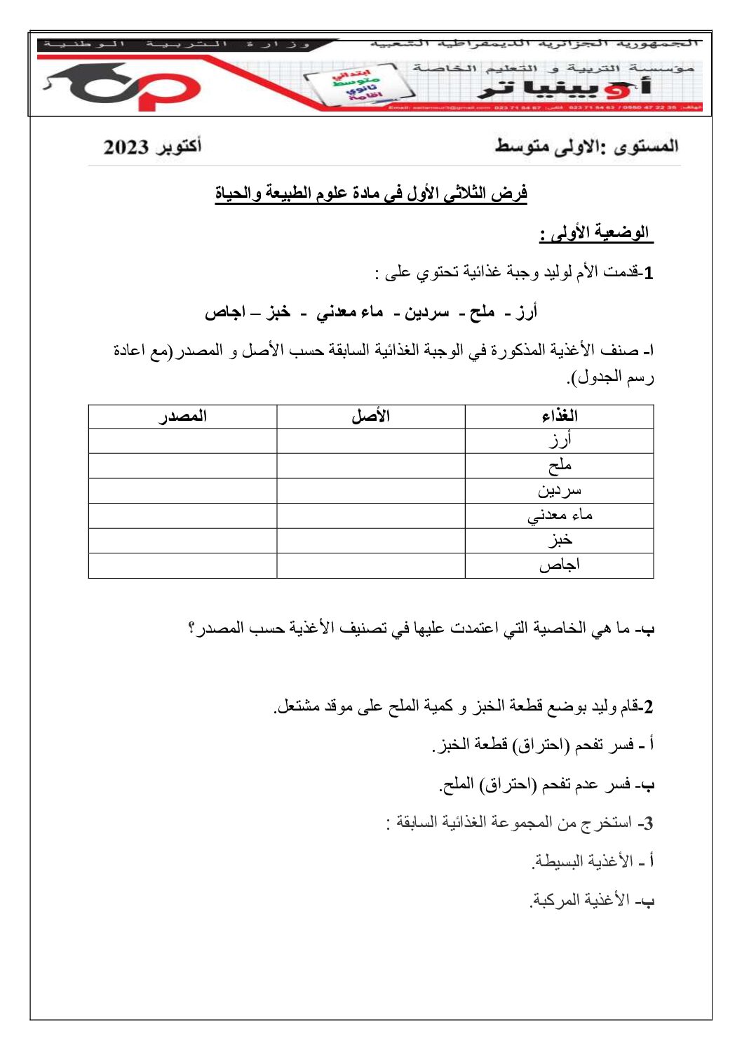 أكمل القراءة »فرض في العلوم الطبيعية الفصل الأول السنة الأولى متوسط رقم 48 مع التصحيح