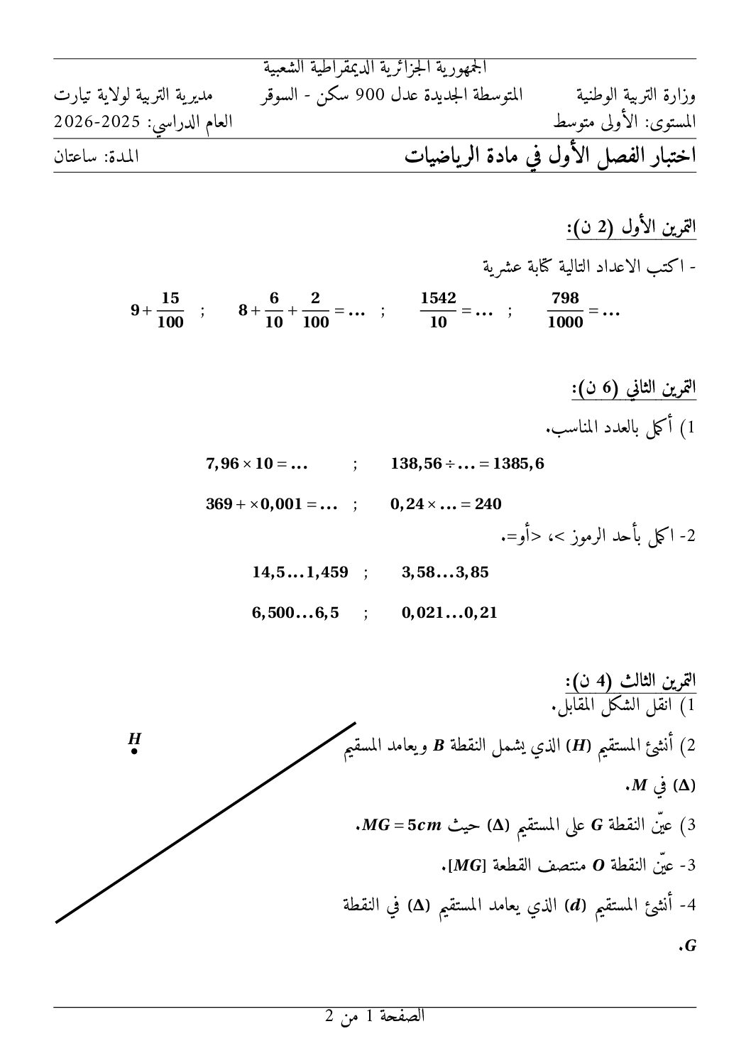 مادة الرياضيات للسنة الأولى 1 متوسط دروس مفصلة، فروض واختبارات، تمارين محلولة: نموذج لإمتحان في الفصل الأول رقم 105- في مادة الرياضيات مستوى السنة الأولى متوسط الجيل الثاني ، السنة الدراسية: 2025/2026 مع التصحيح يمكن تصفح الاختبار مباشرة عبر موقع الدراسة الجزائري أو تحميله مباشرة بصيغة PDF بالضغط أعلاه على: .: تحميل :. الرياضيات السنة الأولى متوسط